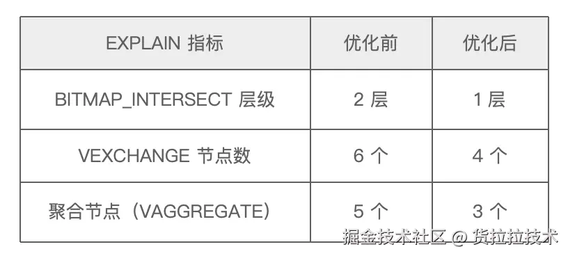 关于 EXPLAIN 指标优化前后的具体表现,我们在此也分享一则参考示例,详情如下: