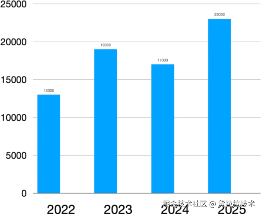 目前货拉拉的画像平台已深度应用于多个核心业务场景,各业务场景对标签的使⽤⽅式和时效性要求各不相同。从 22 年到 25 年,用户呈现稳定增长趋势,业务对服务的压力也是逐年递增,累计接入了 300+ 业务,3,000+ 个标签以及 5 万多人群。