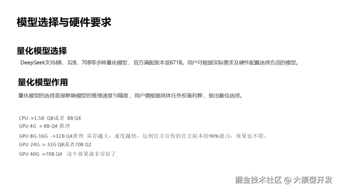 灵活适配硬件:提供 8B、32B、70B 等多种量化模型,从普通电脑到高性能服务器都能跑,平衡精度与性能。