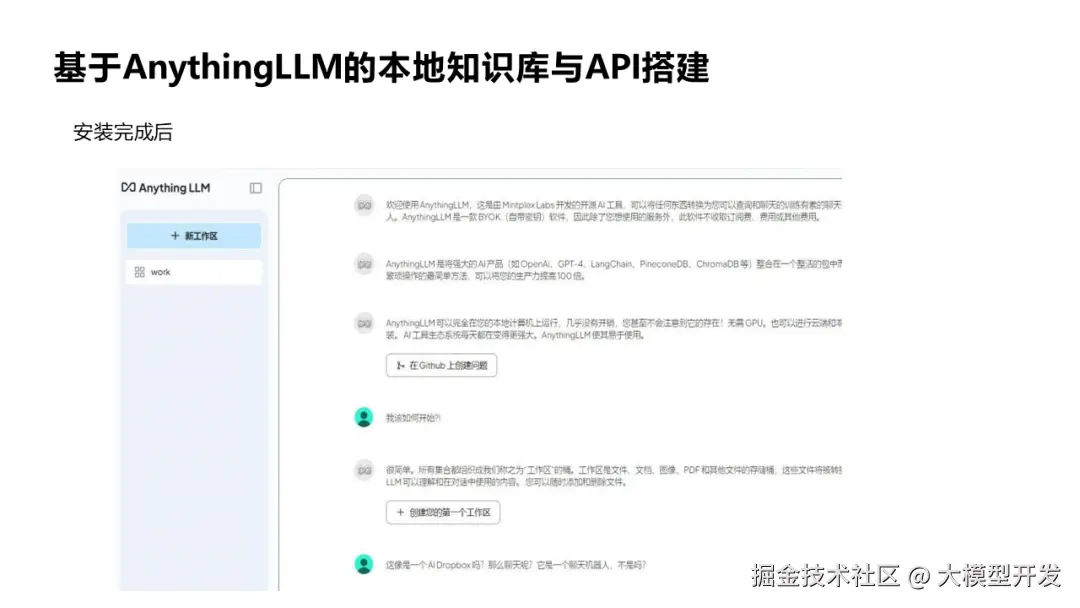 光有模型还不够,结合本地文档才能实现个性化问答。用 AnythingLLM 搭建知识库,步骤如下: