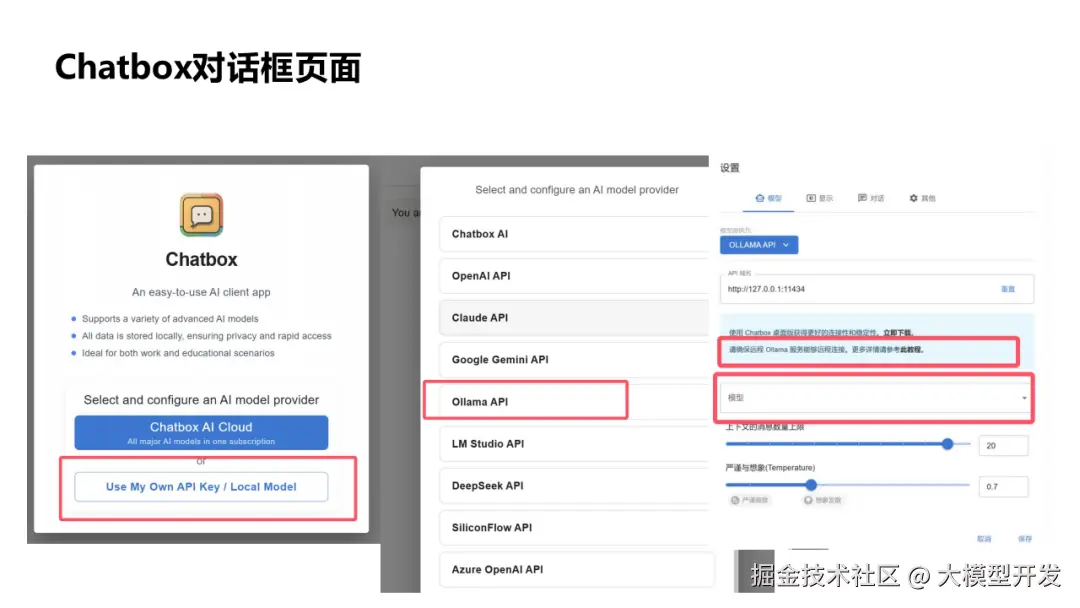 进入设置,选择 “Ollama API”,输入地址http://127.0.0.1:11434,模型选择已下载的deepseek-r1:8b(或其他版本),保存后即可开始聊天。