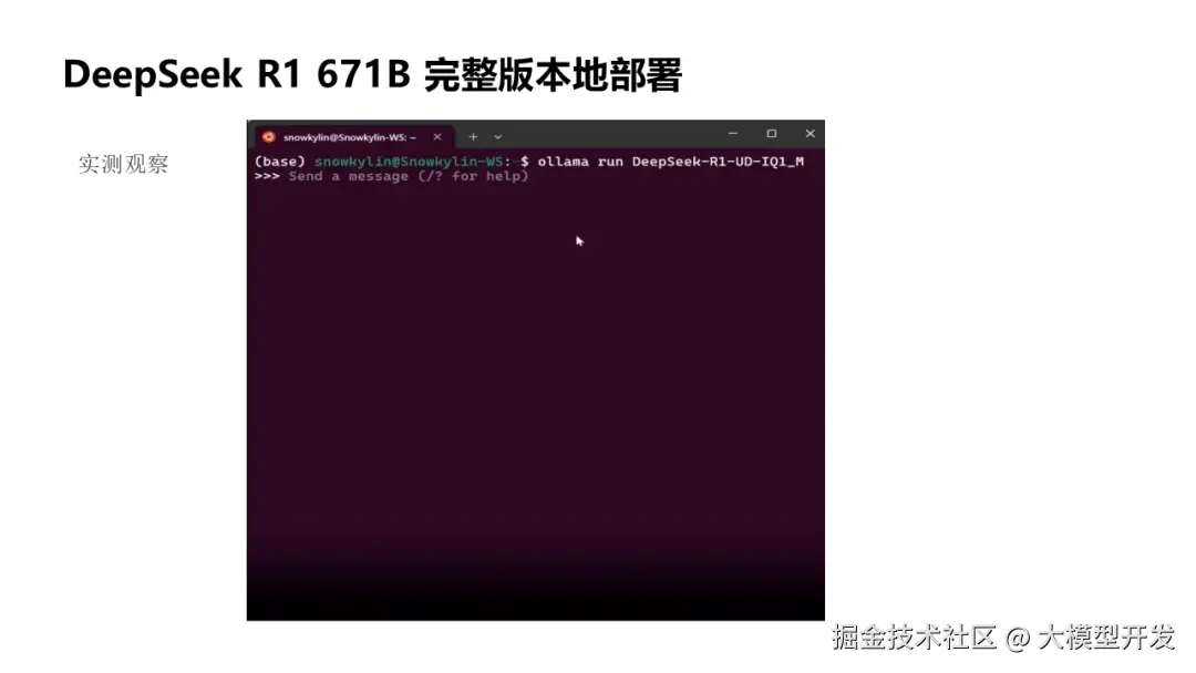 入门级(GPU 4G):输入ollama run deepseek-r1:8b(8B 模型,推理速度快,精度足够日常使用)。