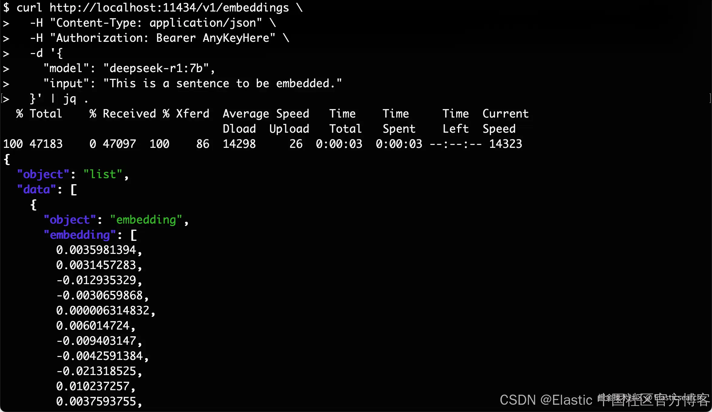 通过 CURL 命令来测试我们的嵌入输出