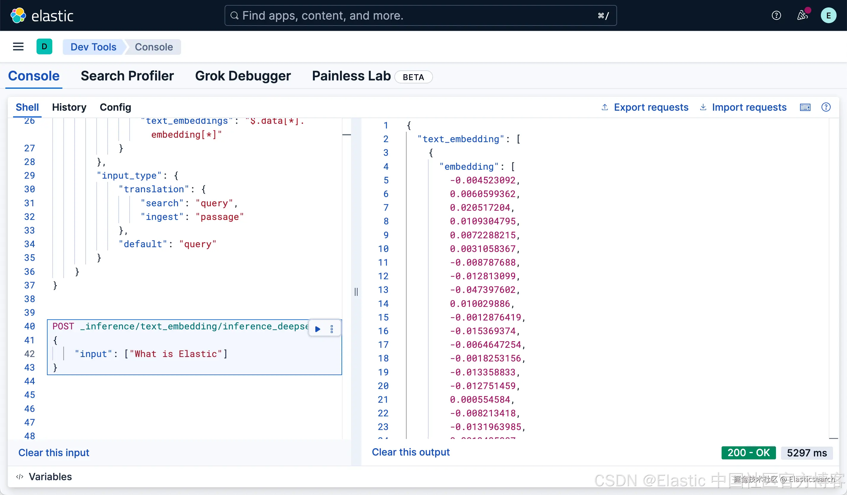 根据上面的输出,也参考我们的文章 “Elasticsearch 推理 API 增加了开放的可定制服务”,我们设计出如下的 endpoint API: