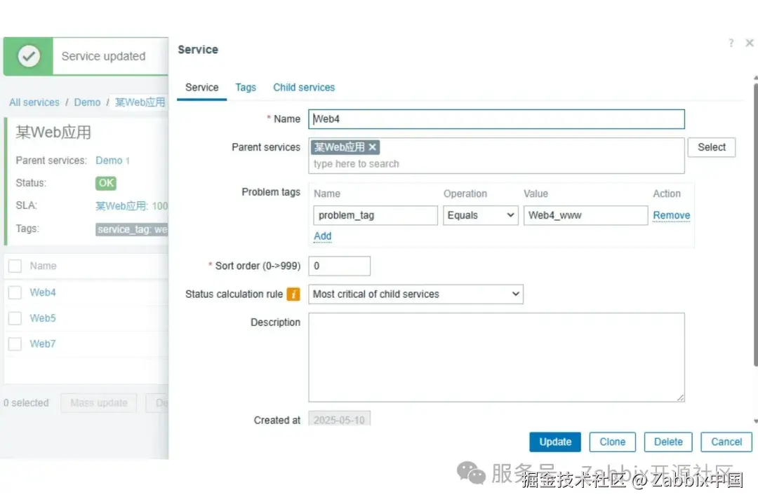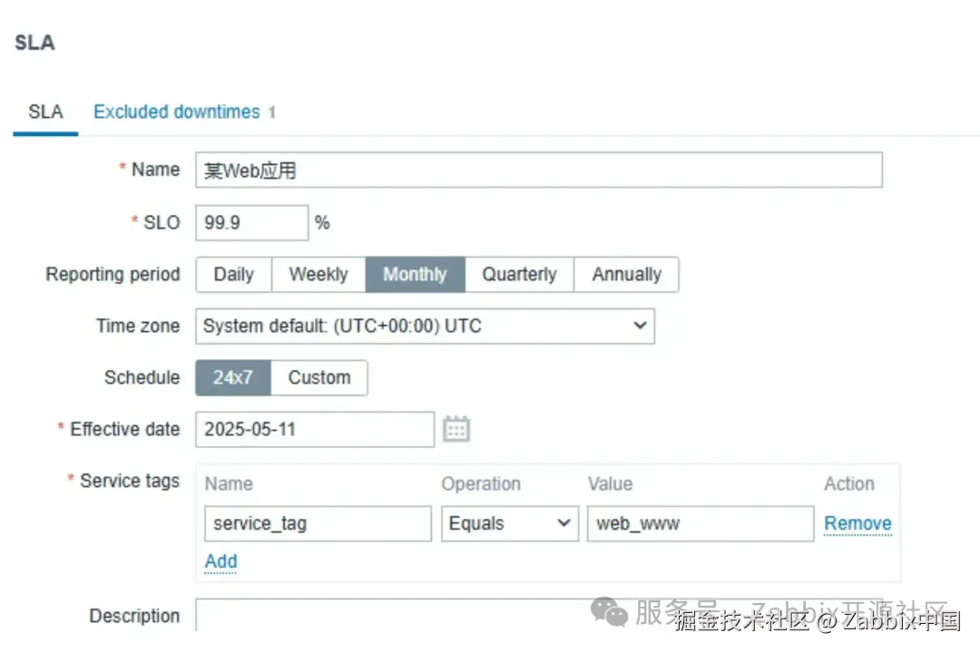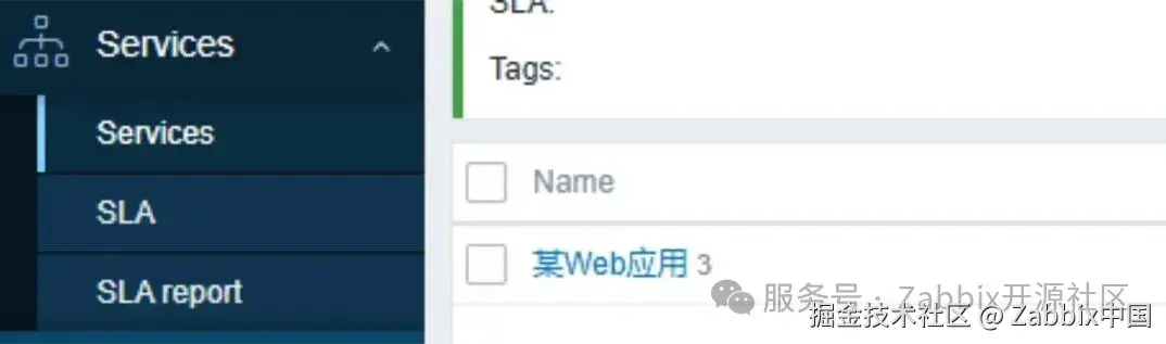SLA,全称是Service Level Agreement, 是用来管理服务的表现。在Zabbix中我们可以把自己的应用监控起来,还可以为它建立SLA。