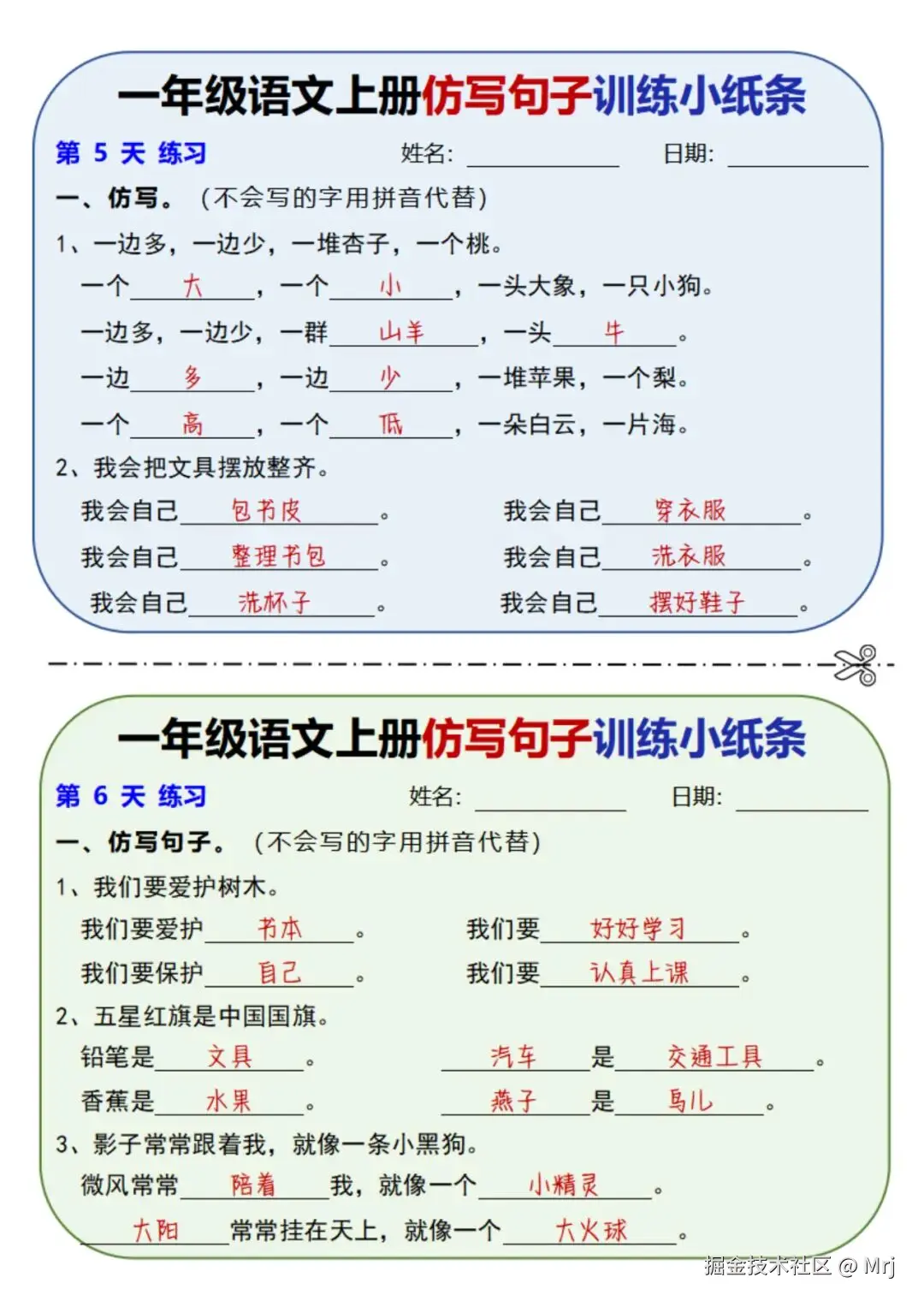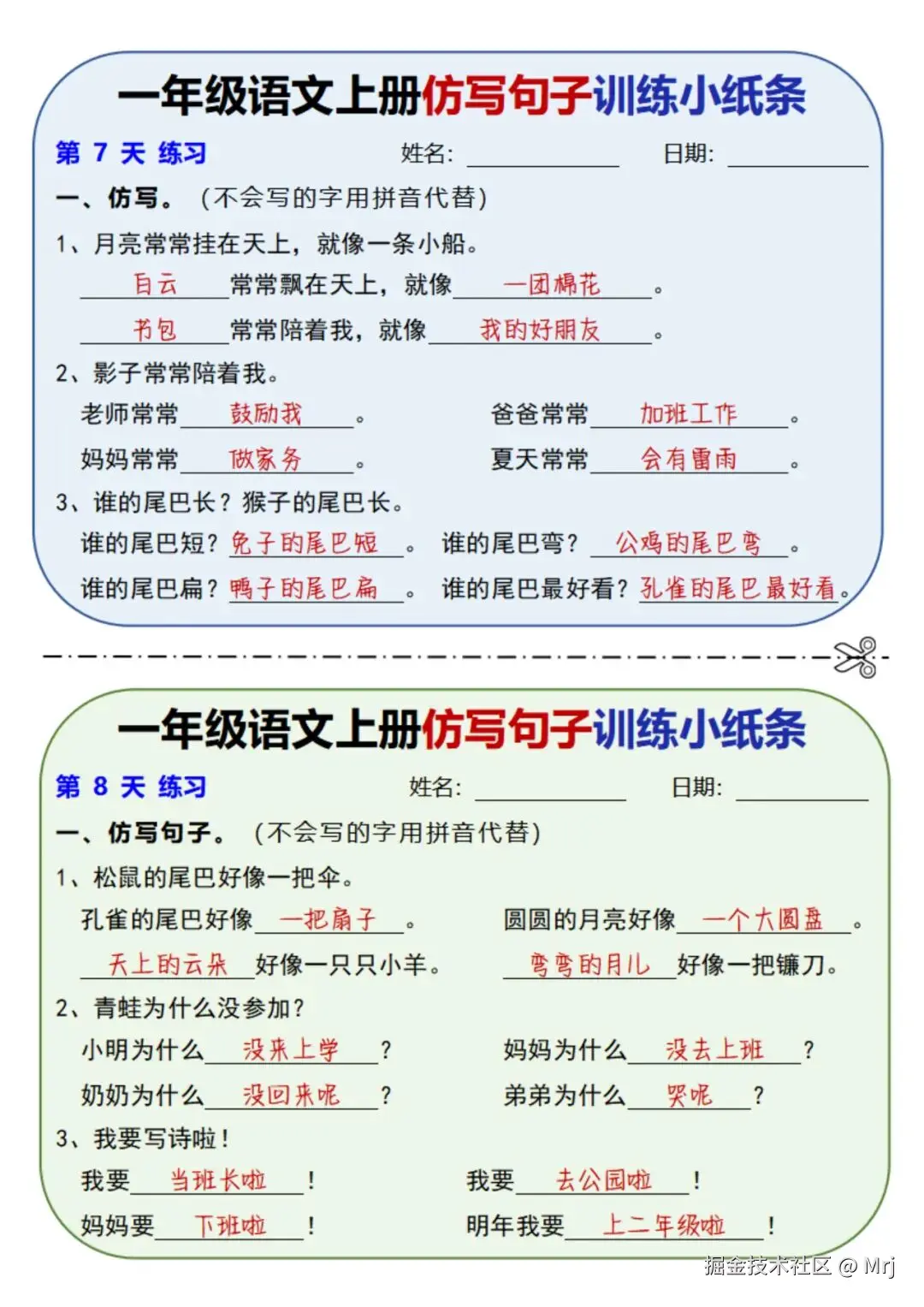 新一语文仿写训练神器!10 页小纸条含答案,轻松提升造句能力
