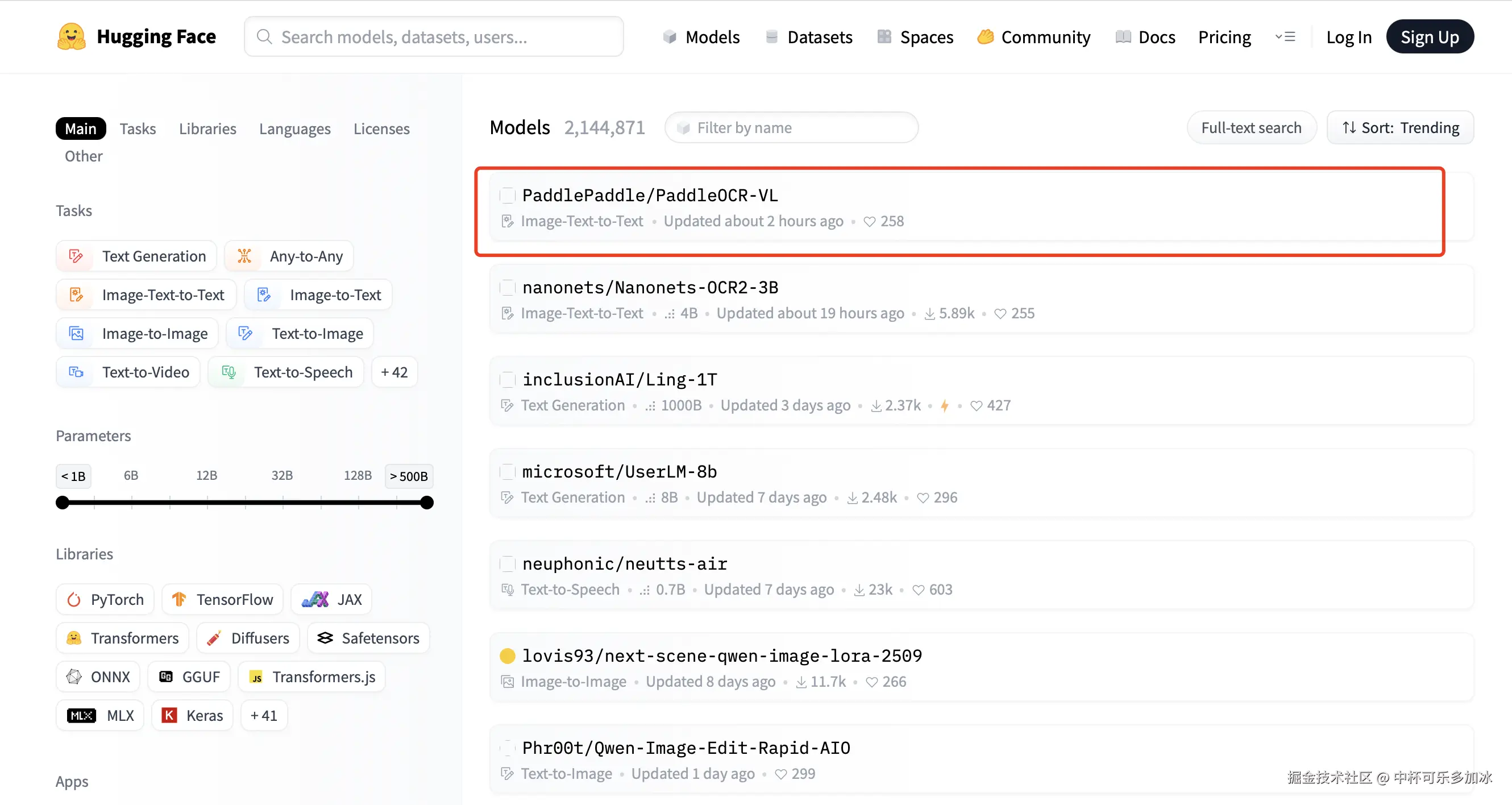 PaddleOCR-VL在开源后16h,登顶HuggingFace Trending全球第一。