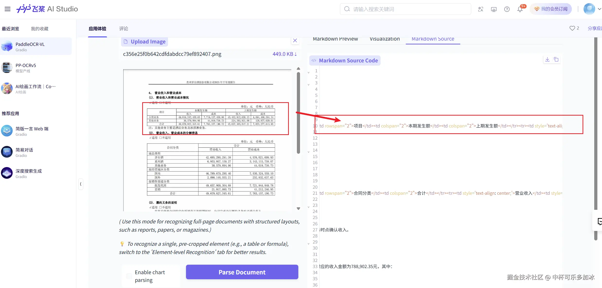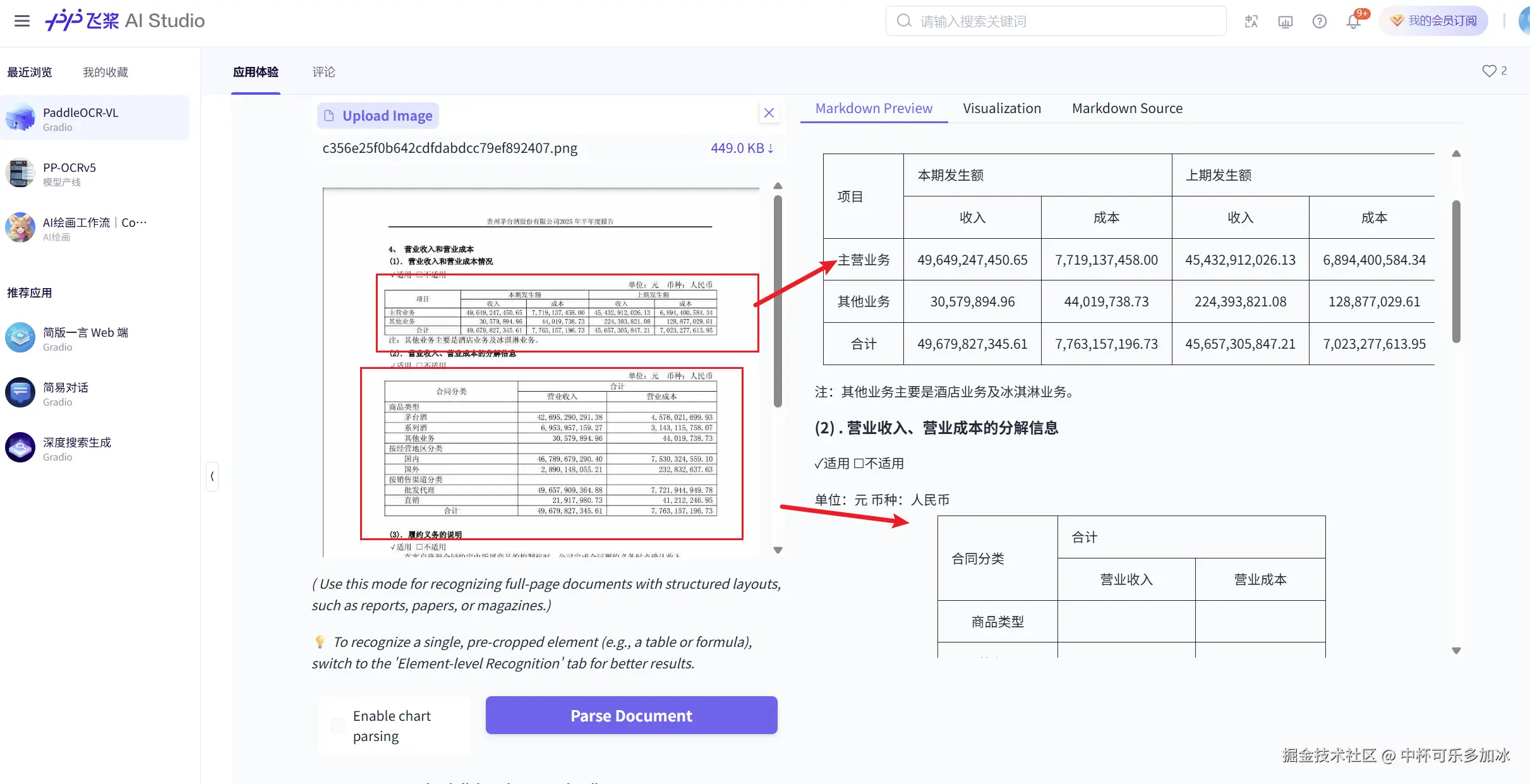 针对复杂的财务报表,PaddleOCR-VL展现出了超越传统表格识别技术的语义理解能力。模型不仅准确提取了表格中的数值数据,还深入理解了数据之间的结构和上下文关系。更为重要的是,模型将这些理解转化为结构清晰的Markdown格式输出,保持了表格的层次关系和语义关联。这种深度的表格理解能力,使得后续的数据分析和业务处理变得更加直接和高效。
