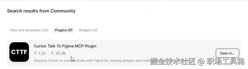 添加Figma插件:在Figma社区搜索插件Cursor Talk To Figma MCP Plugin,点击右侧的按钮添加到Figma。