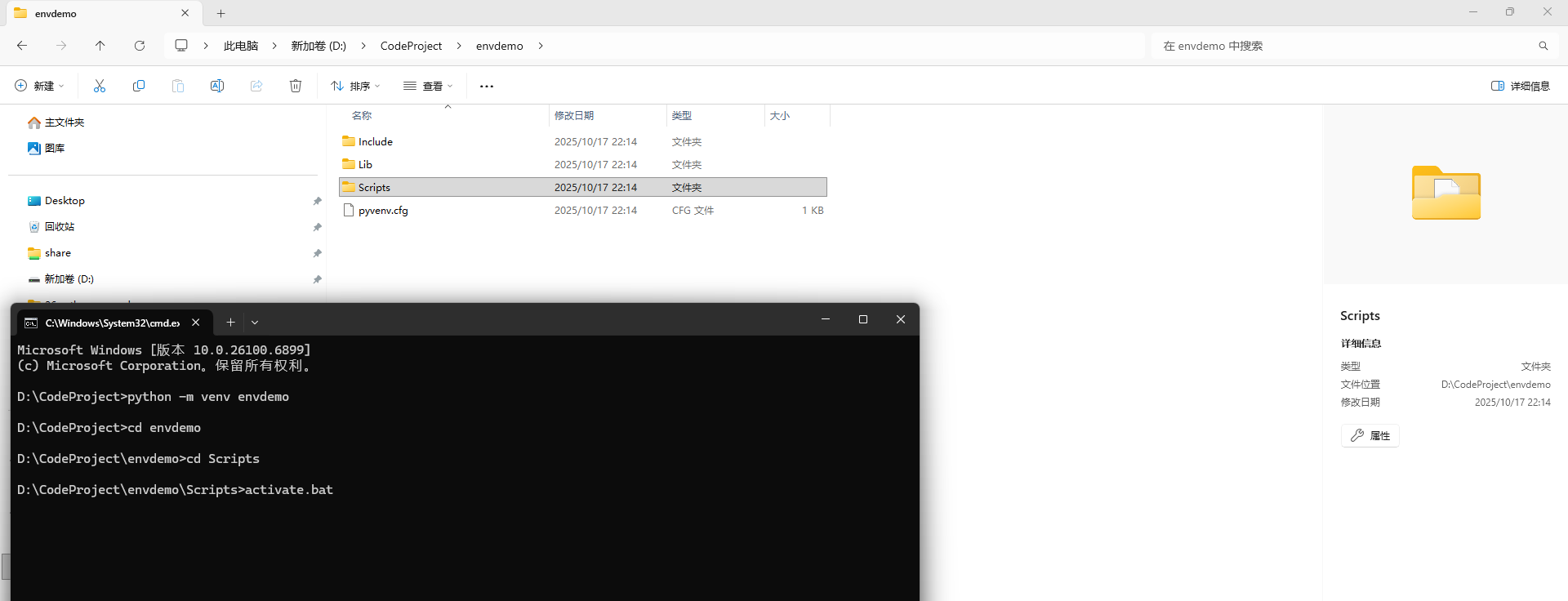 激活成功后,你会看到命令行提示符前面多了(myenv)标识,表示你现在处于虚拟环境中。
