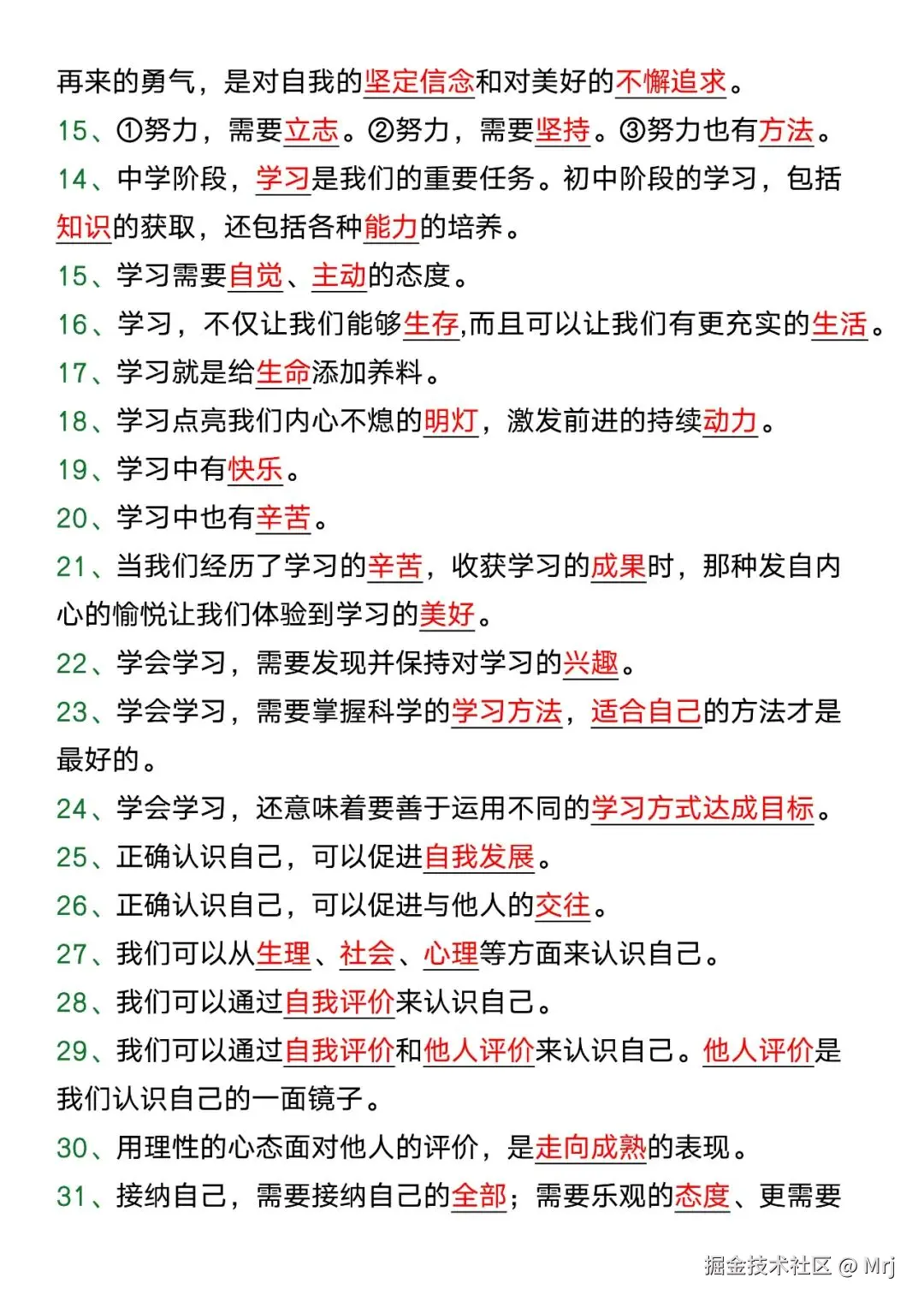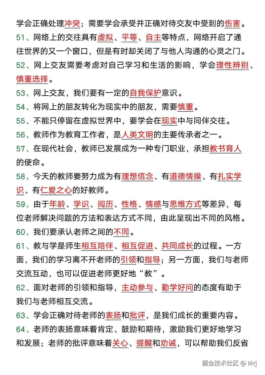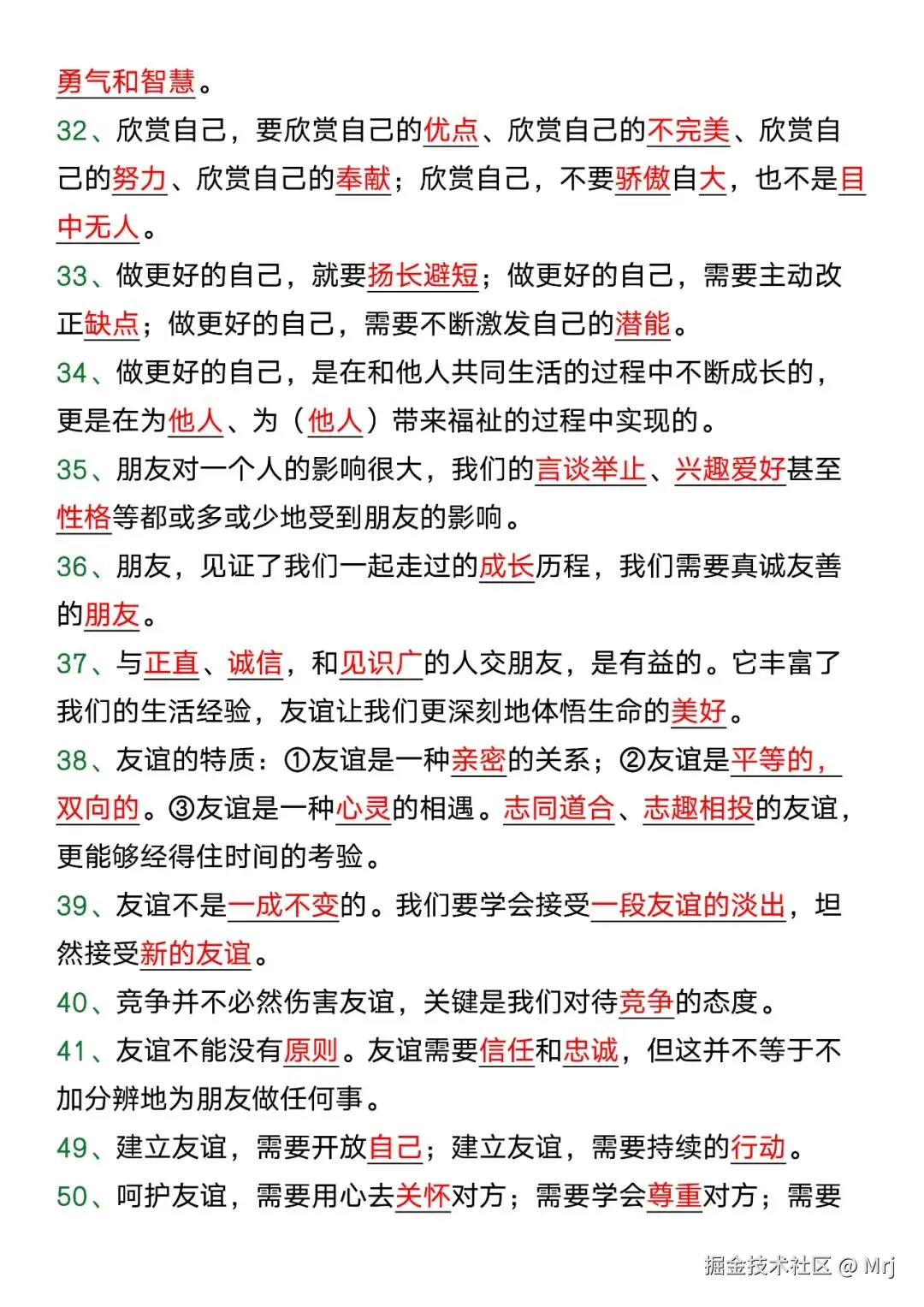 七年级道法上册期末必考重点知识填空