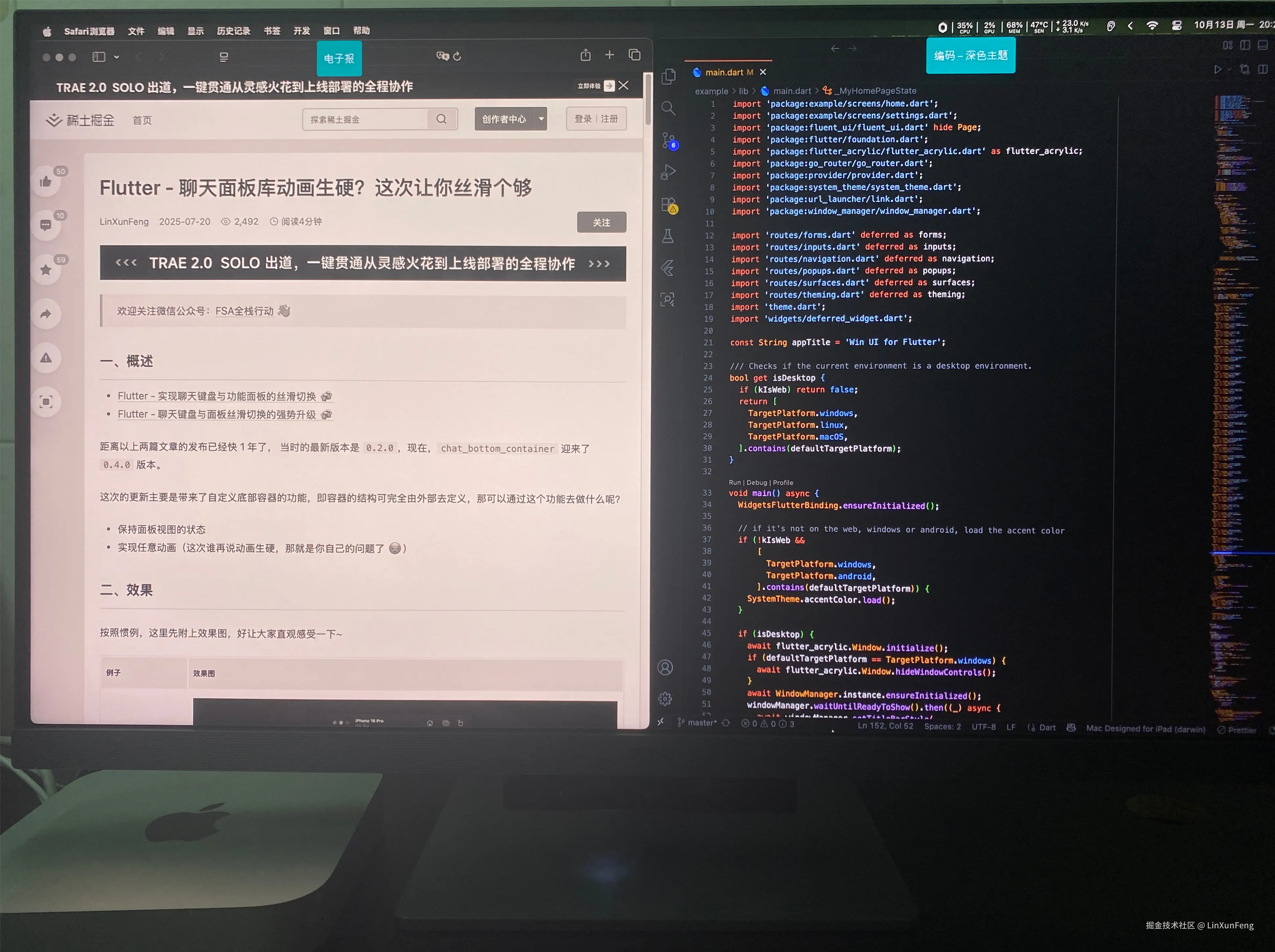 【双主机】 左: Mac(M-book) 右:Windows(编码-深色主题)