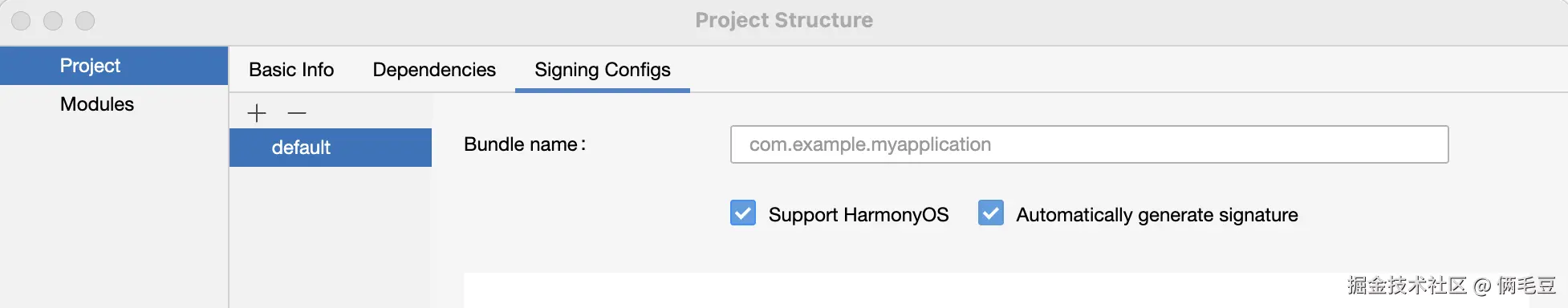 在DevEco Studio中,默认创建的项目,仅有default这一项签名的配置。在开发阶段和发布阶段因需要使用不同的签名证书,如果仅用default这一配置项,那么就得在开发及发布阶段时切换default配置项中的证书及密码的配置。