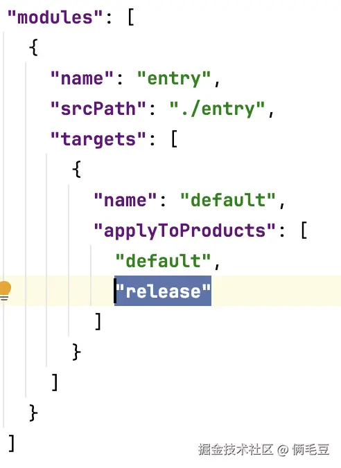 如下图所示,对build-profile.json5文件中的modules配置项,关联release Product。