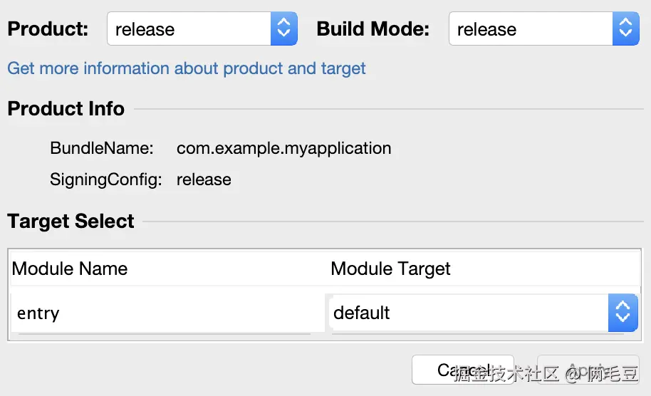 选择release,如下图所示,Target Select中的Module Target是不可选的状态,这是因为Module还没有对应的Target可以支持。需要对modules的target进行配置。