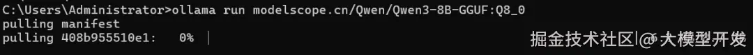 比如我想让ollama拉去8bit量化的,就在模型拉取地址中加上:Q8_0即可,就像下面这样: