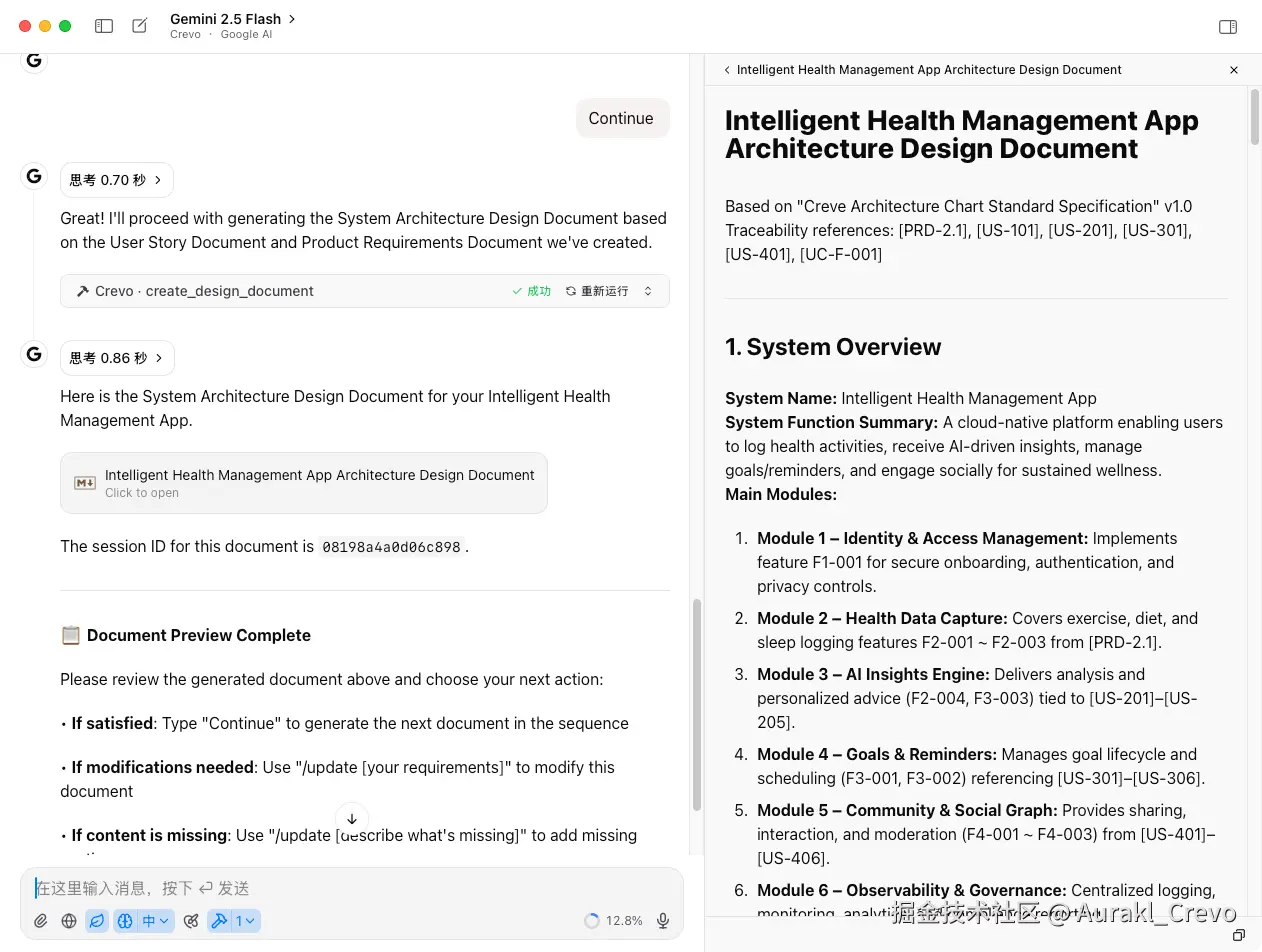 Crevo 不仅仅是一个文档生成工具,更是你的 AI 技术顾问: