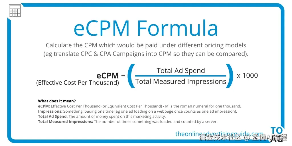 在算这笔账之前,你需要了解一个关键指标:eCPM(Effective Cost Per Mille)。