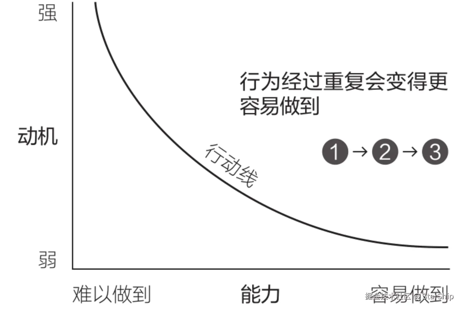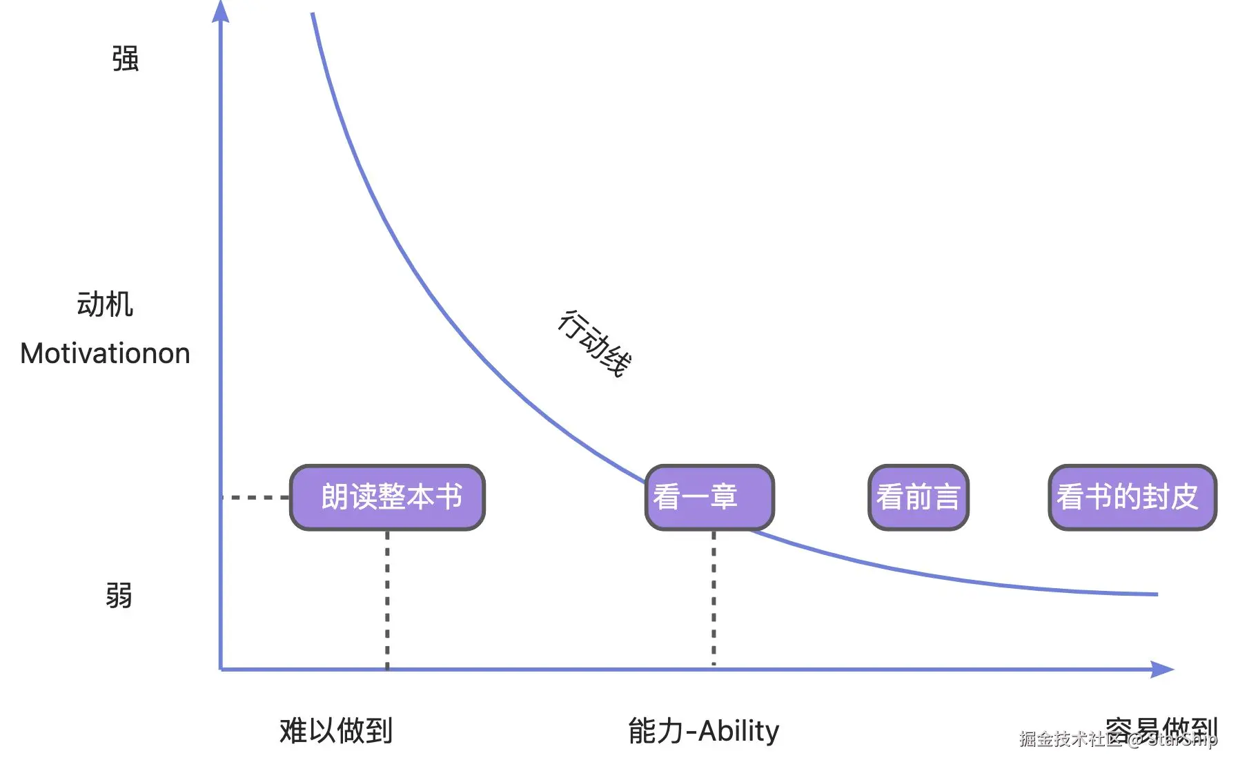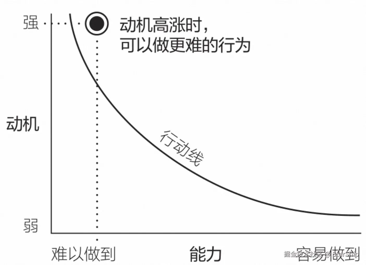 晚上回到家刷手机这个行为,就位于坐标轴的右上方,三要素都具备,所以行为就比较容易发生。