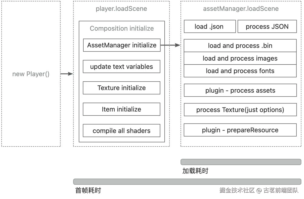 - GPU 编译等,所有的 WebGL 程序在绘制之前都需要编译 Shader(编译耗时优化由 player 处理)