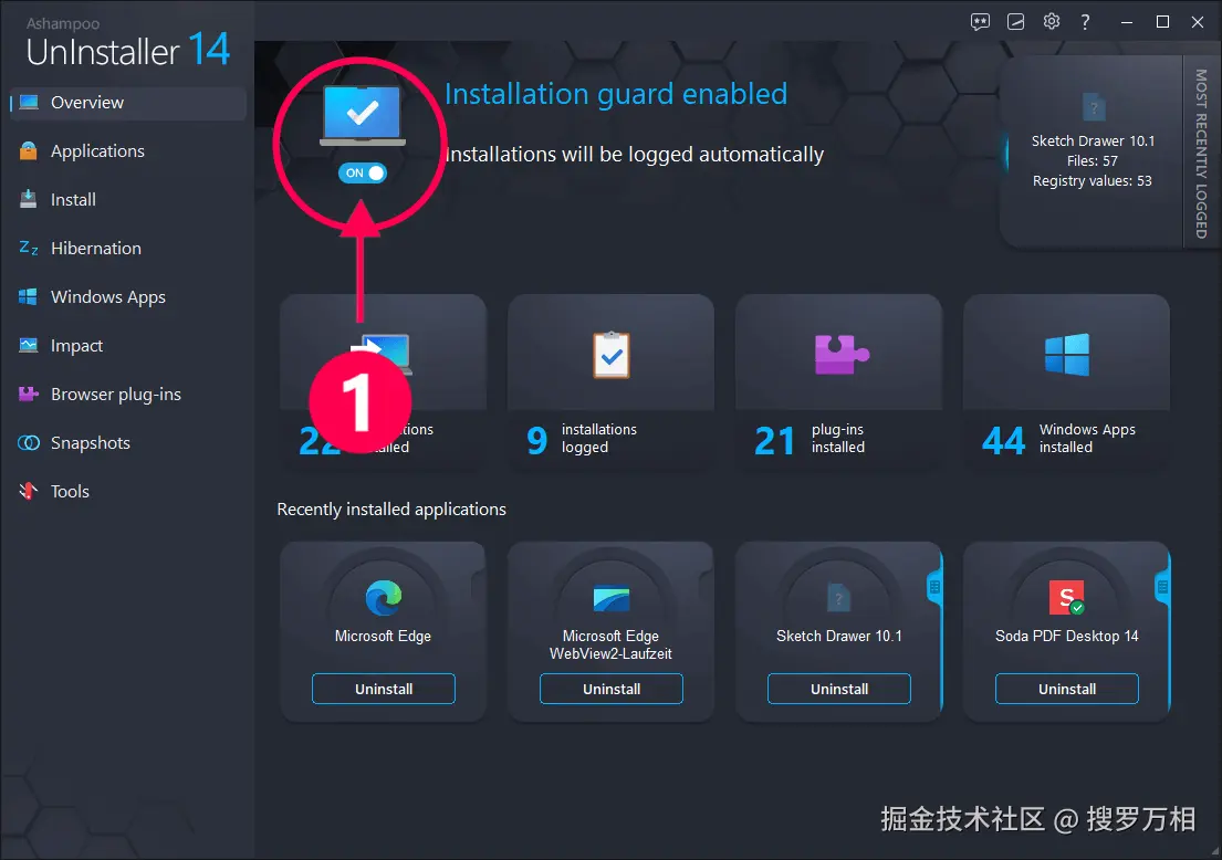 一旦启用,UnInstaller 将自动检测新的安装,并记录系统的所有更改。这可以确保该软件在以后可以被完全移除。