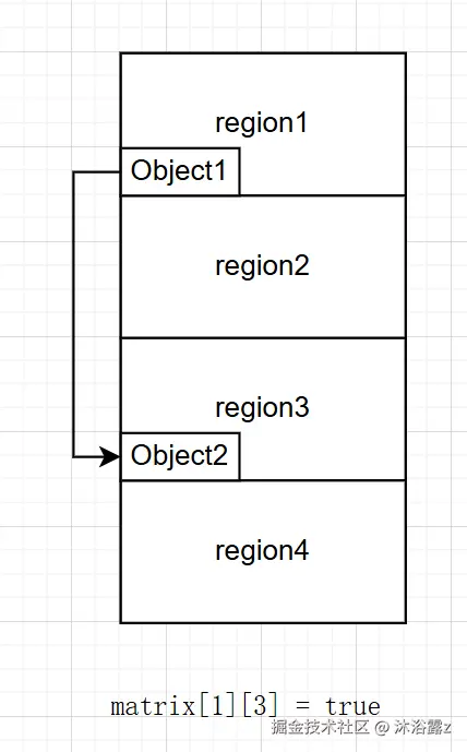 matrix[1][3] = true,则表示 Region 1 中存在引用指向 Region 3 中的对象;反之则无。