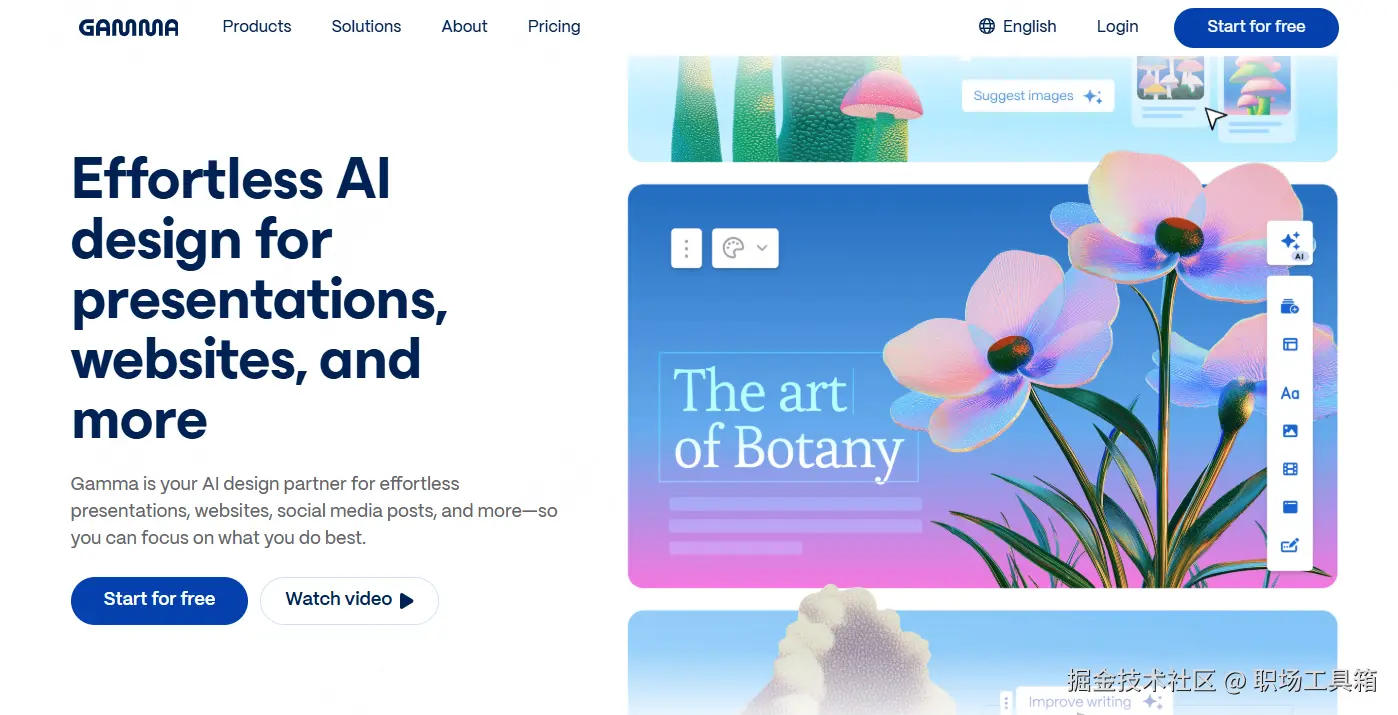 Gamma是一款在国外广受好评的AI演示工具,它更像一个融合了网页、文档和PPT三者特性的“新物种”。Gamma彻底打破了传统幻灯片的线性束缚,以一种更现代、更具互动性的卡片式布局来组织内容。它强调内容的流动性和视觉吸引力,致力于让每一次演示都像在浏览一个设计精美的网站。