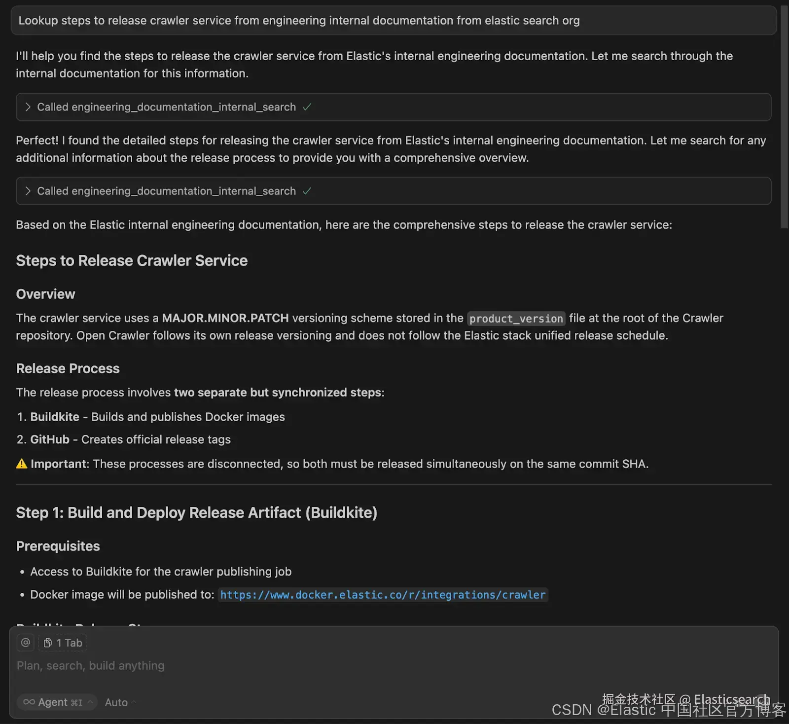 - 该工具对 elastic-dev-docs 索引执行语义搜索,并返回最相关、最新的操作步骤。