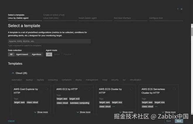 1、主机向导将引导您完成所有主机创建和配置步骤——从创建主机并分配模板,到在受监控主机上安装Zabbix agent,以及为服务器发起的检查配置Zabbix server
