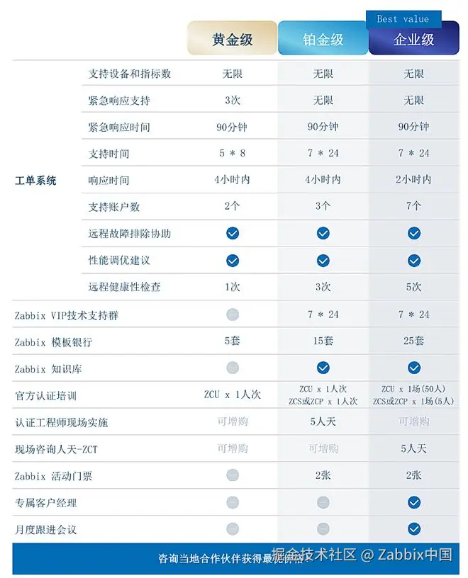 Zabbix原厂技术支持服务是Zabbix用户获取解决方案、专业建议、技术支持的最快路径。