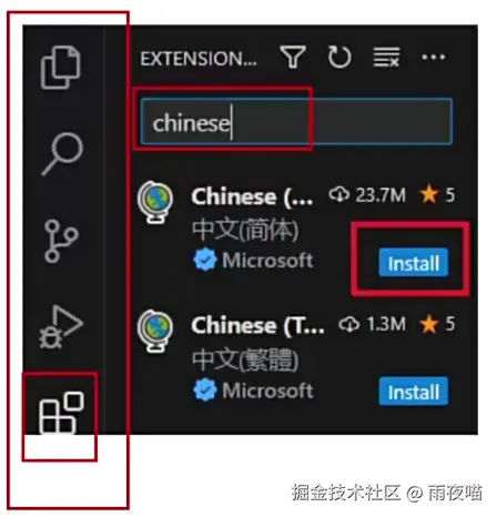 - 扩展->搜索插件->安装->重启VS Code
