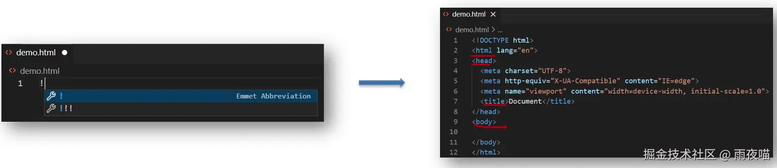 在HTML文件中,先打出 !(英文)再按Enter/Tab键