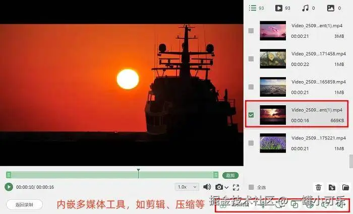 画质和参数设置更是自由度拉满!录制前能按需定制视频格式(MP4/AVI等主流格式全覆盖)、画质等级(支持4K超清)、帧率(最高60fps,丝滑不卡顿),还自带智能音画同步技术,再也不怕出现“口型对不上”的尴尬。最贴心的是,软件内置了一站式视频编辑工具箱,录完直接剪片段、合并素材、压缩体积、转换格式,省去切换软件的麻烦,效率直接翻倍,打工人和学生党狂喜!