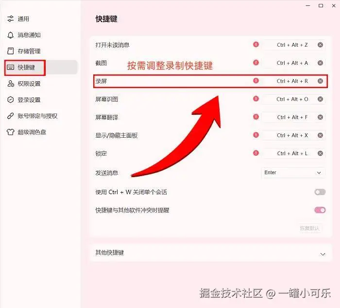 备注:如果需要自定义电脑的录屏快捷键,还可以在 “快捷键设置” 中进行设置。