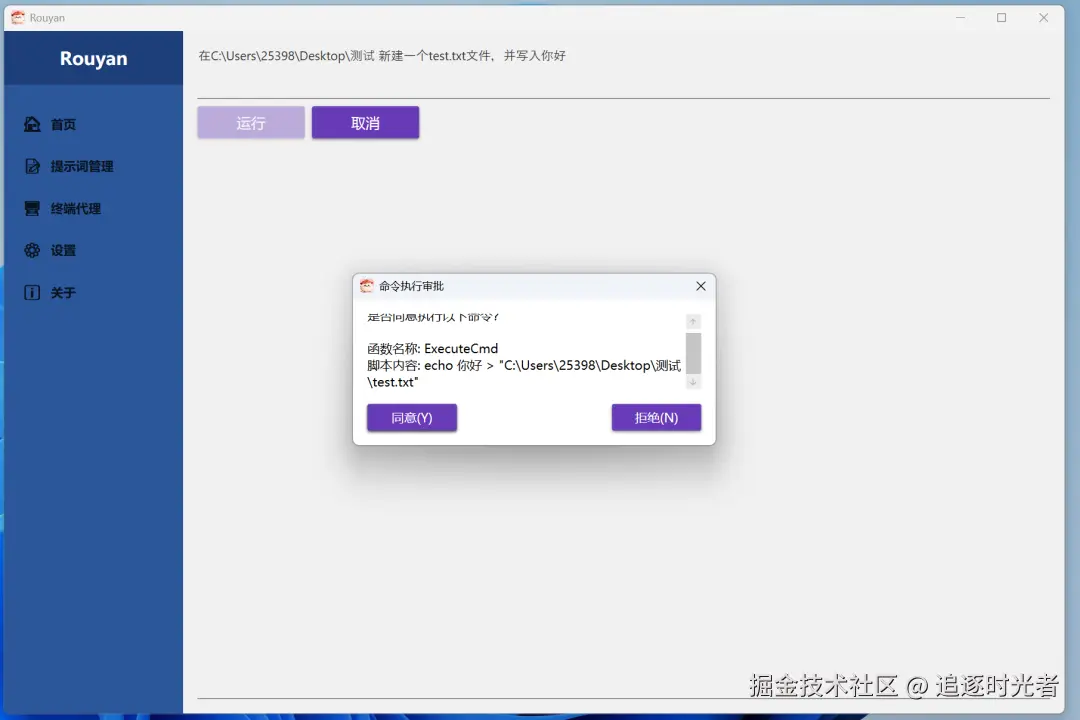- 文章简介: 最近新出了一个Microsoft Agent Framework框架,我感觉还挺有意思的,就通过它的那个Using function tools with human in the loop approvals例子,做了一个终端助手Agent。我觉得使用这个作为学习人在环上这个例子蛮合适的,因为对于需要执行敏感操作(如系统命令)的场景,人工审批机制显得尤为重要。本文以Rouyan为例,说明如何使用Microsoft Agent Framework创建一个能够执行终端命令并具备人工审批功能的WPF应用。