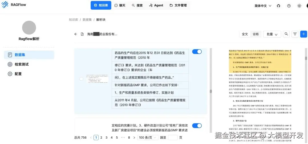 从知识库查看分块结果,可以明显看出解析效果提升,文本和表格识别准确率提高。