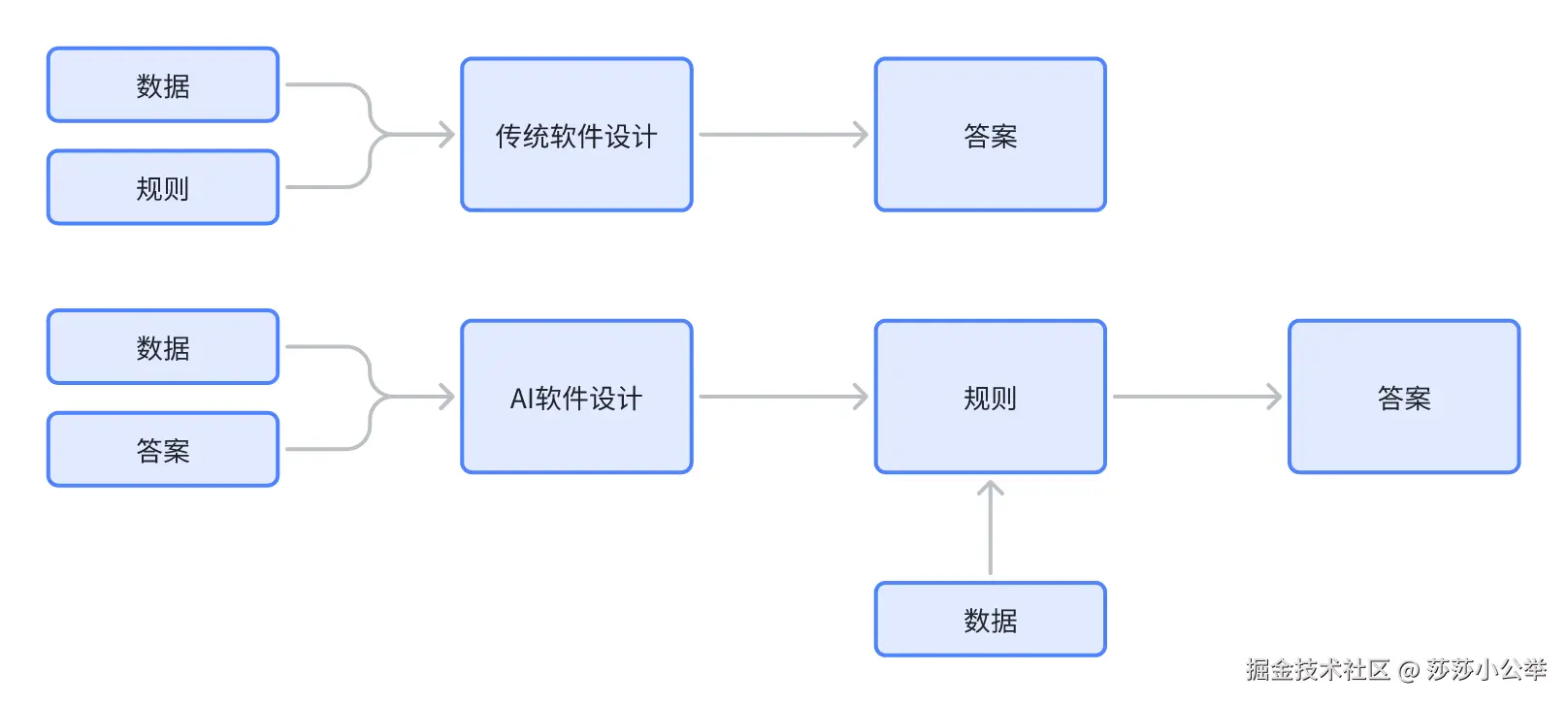 - 传统软件的规则是人为写进去的,人工智能系统的规则是从数据中学到的,不断有新的数据进来之后,它里面的规则也会进一步地进行改变。根据学到的规则再从你的输入的数据中得出一个结果。人工智能系统不是通过编写明确的逻辑,而是通过数据来训练数据、训练规则。所以它的测试方法和传统软件的测试方法肯定是有所区别的。