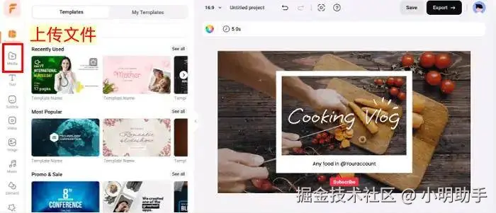 FlexClip同样是一款在线工具,网站提供模板化的压缩模板,可以更快地将视频压缩成合适的格式并快速上传至社交媒体中。