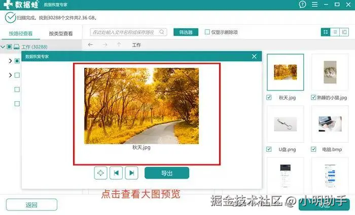 - 预览功能: 需要找回的文件为图片类型的话,支持恢复前预览内容。