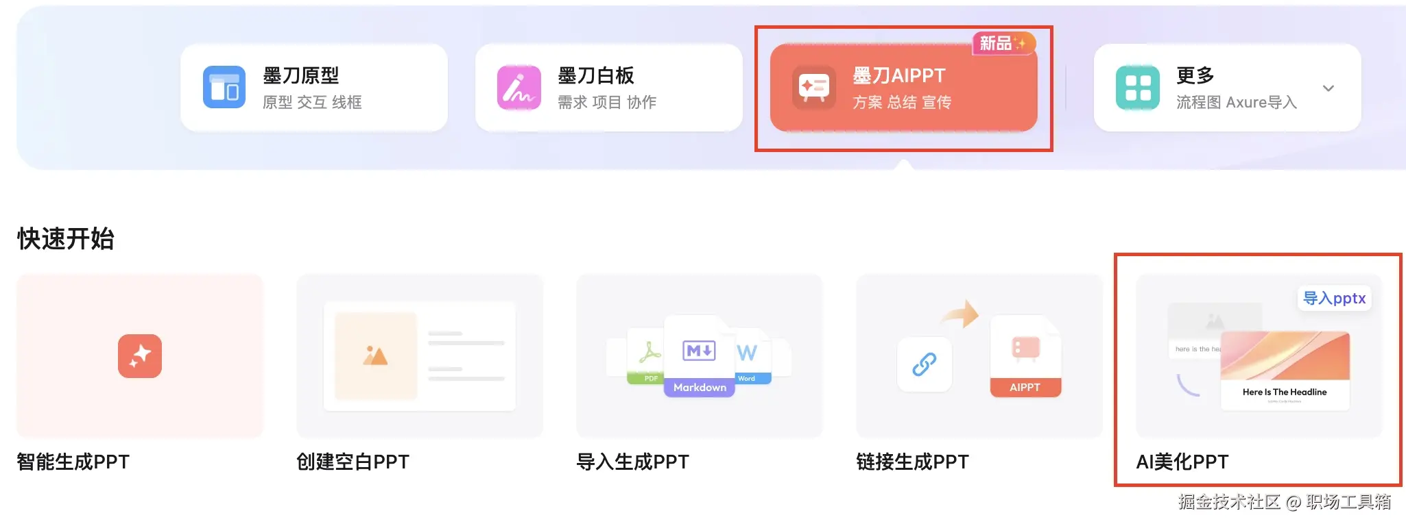 墨刀,作为国内知名的产品设计与协作平台,早已在产品经理和设计师群体中积累了良好的口碑。如今,墨刀将其在产品设计领域的深厚积淀与前沿的AIGC技术相结合,推出了墨刀AIPPT功能。墨刀AIPPT将AI能力深度融入其一站式产品协作流程中,旨在为用户提供从需求构思、原型设计到演示汇报的无缝衔接体验,让PPT的创作真正实现“秒级”响应。