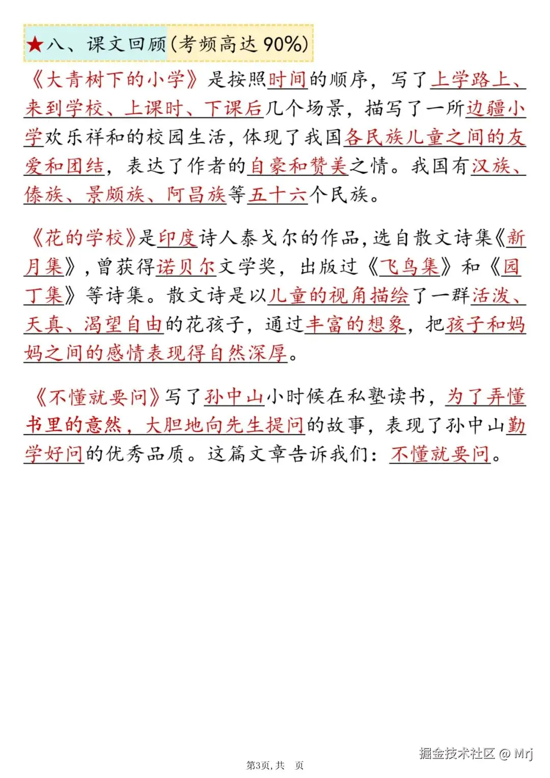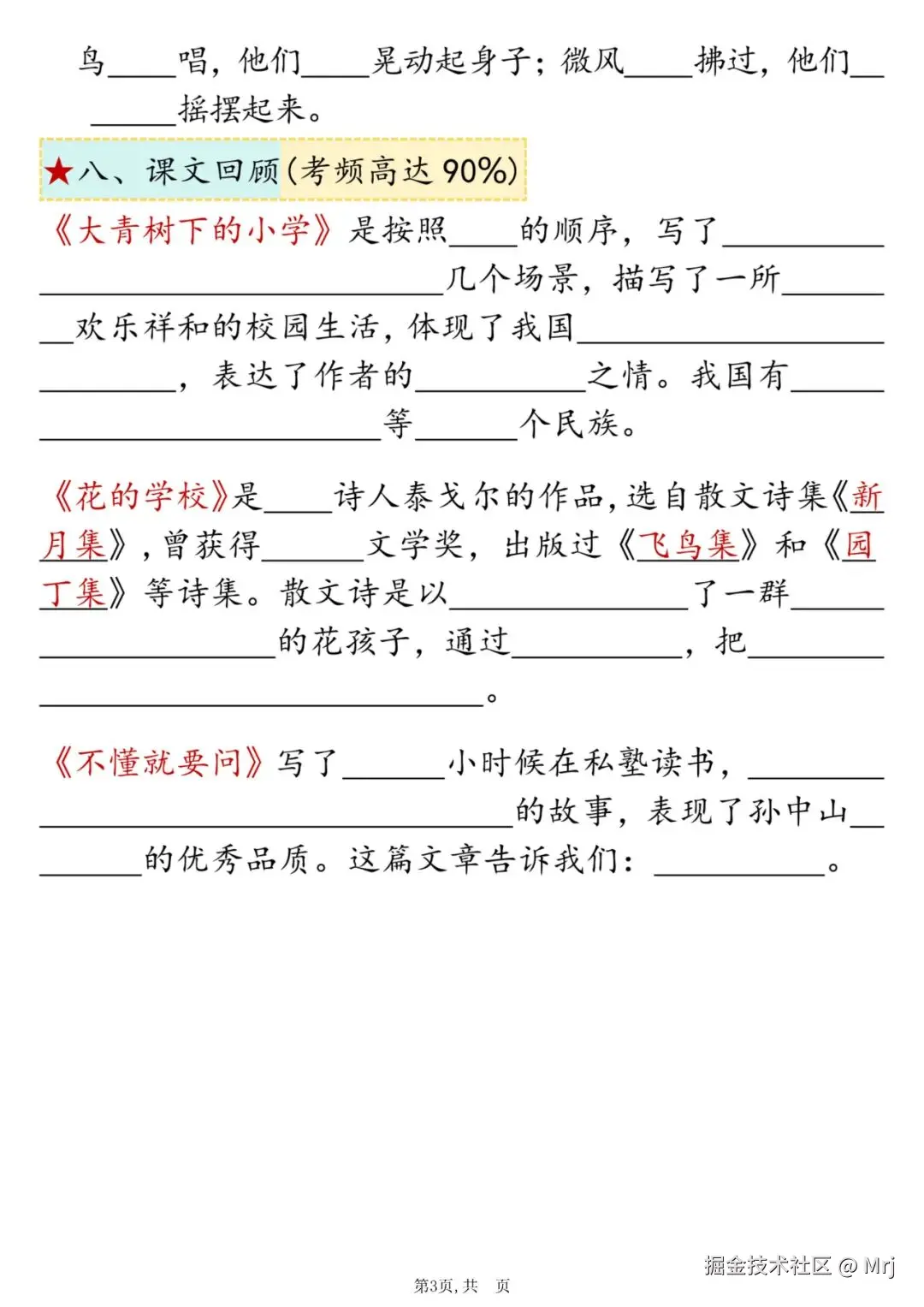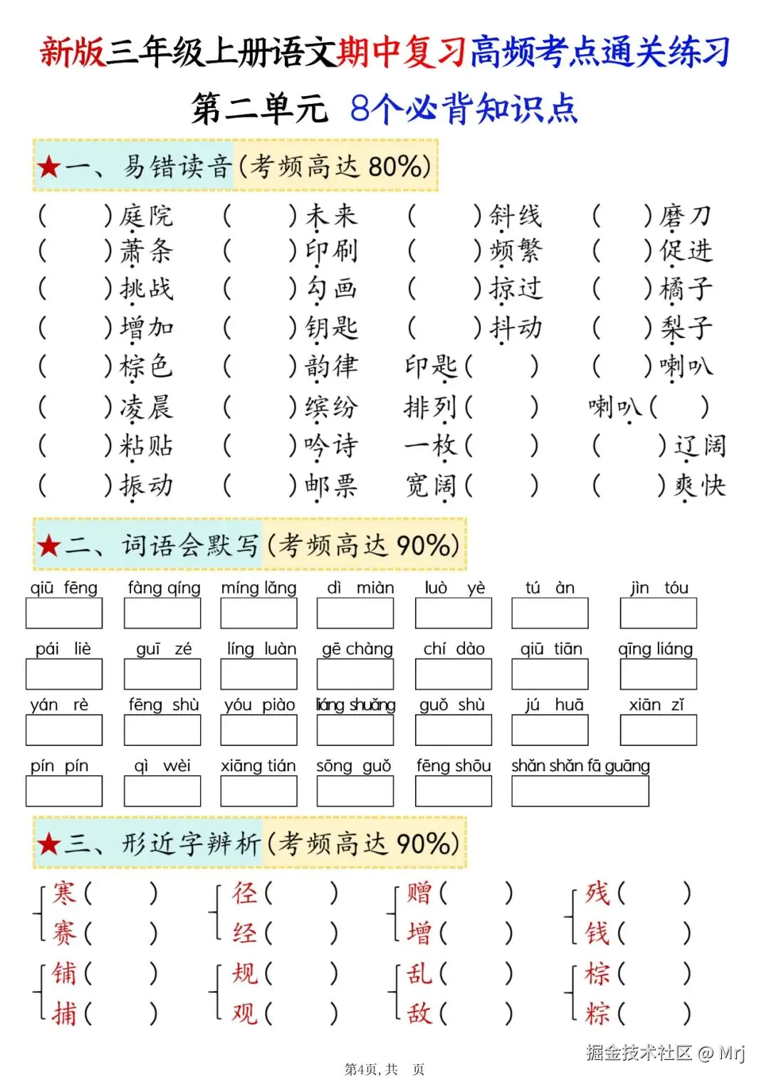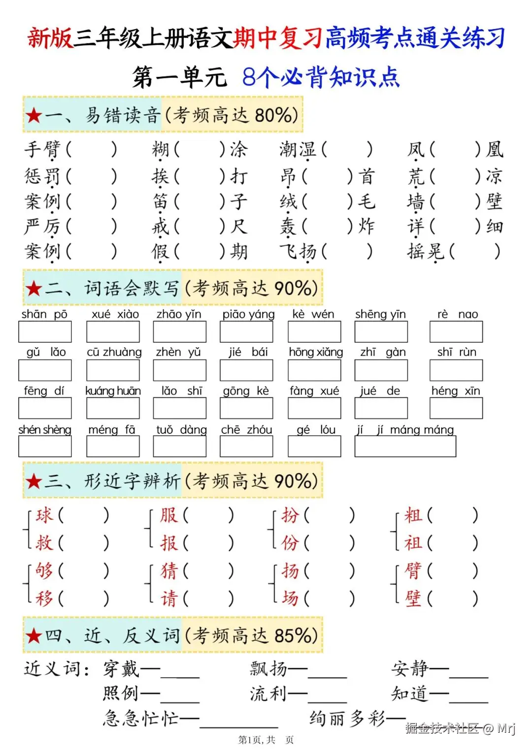 [爱心] 三年级上册语文期中复习《高频考点总结+配套练习》