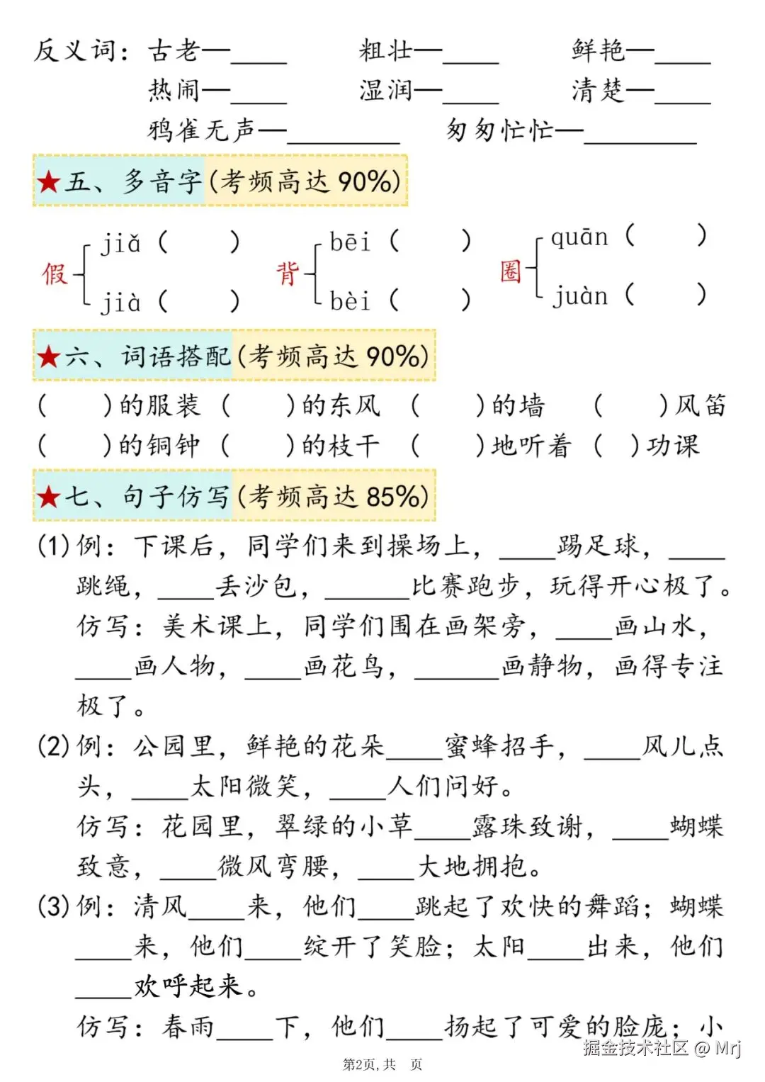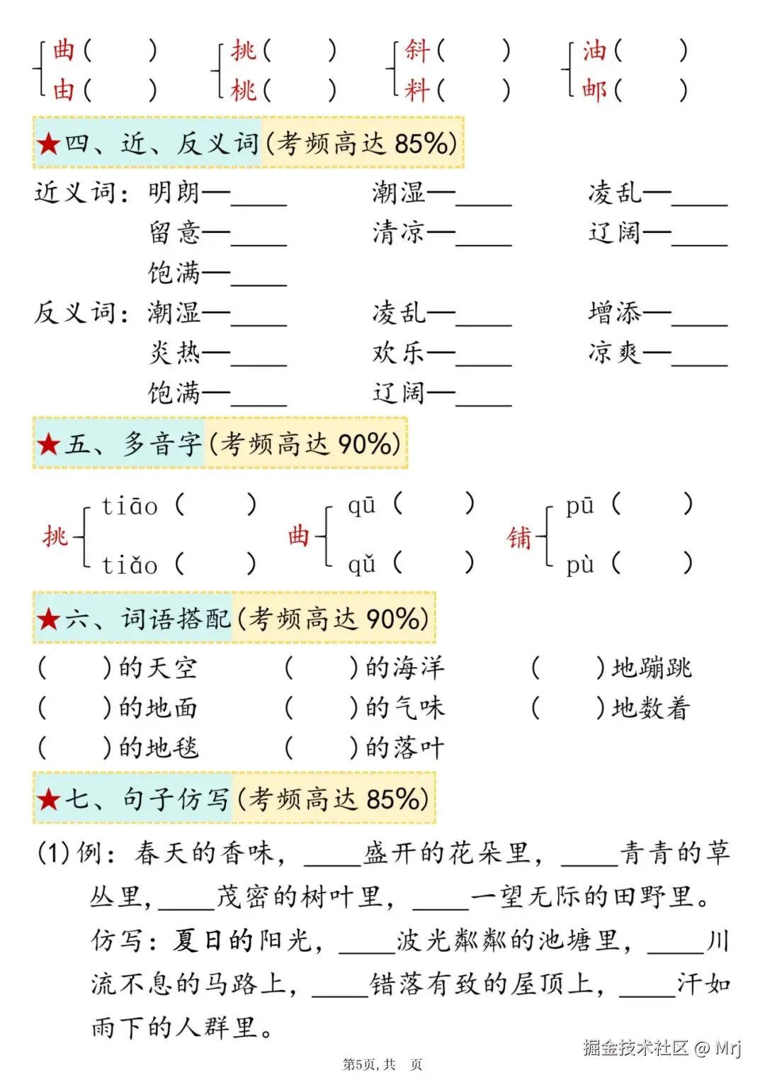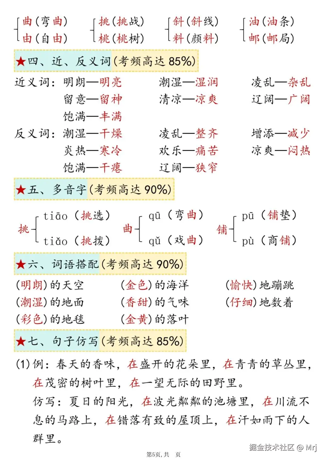 25年人教新版三年级上册语文期中复习《高频考点总结+配套练习》,电子版可打印可下载,这份三上语文期中复习单元汇总资料,包含了易错读音、形近字、近反义词、多音字、词语搭配、句子仿写、课文回顾等8个必背知识点,帮助孩子系统地复习所学知识,提高语文期中考试成绩。需要的家长抓紧打印出来,让孩子练一练吧。