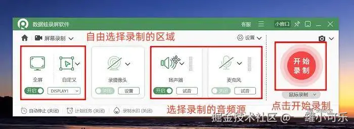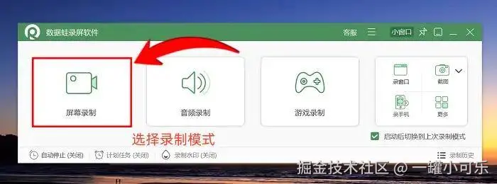 第1步:电脑可以录制视频吗?电脑录屏第一步!先把藏在电脑里的数据 蛙录屏软件叫出来!打开软件后,会看到好几种录制剧本,今天咱们先锁定最常用的屏幕录制模式。
