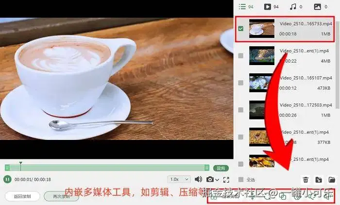 第3步:录完还想给视频加buff?比如剪掉开头的多余片段,给重点内容加个闪烁特效,甚至配个可爱字幕,直接点击 “高级剪辑” 就行!这里就像个迷你后期工作室,各种小修小改都能轻松搞定,让你的录屏视频瞬间变有趣。