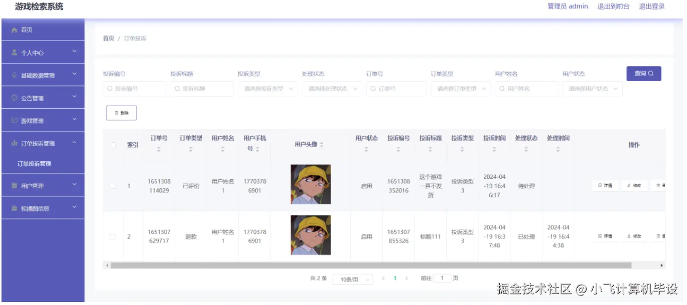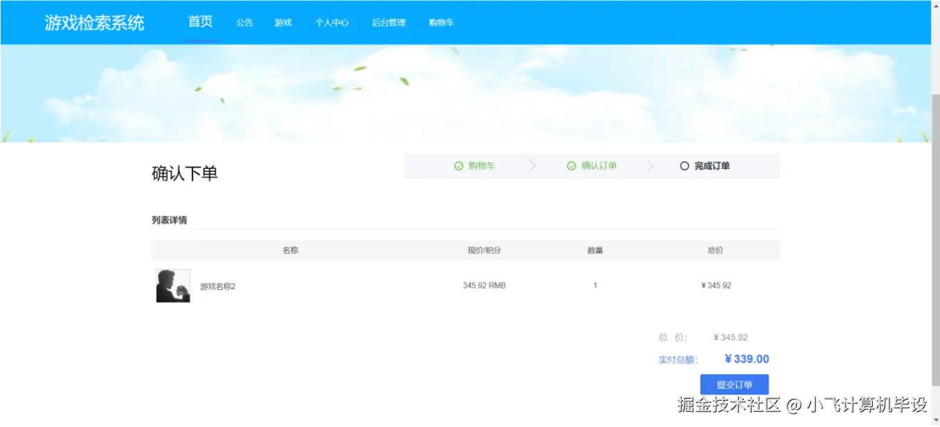为解决这些痛点,本项目开发 “基于 Spring Boot 的游戏检索系统”,整合 “游戏信息管理、订单处理、用户交互、后台管控” 四大核心能力,通过 Web 端实现跨设备访问,让玩家高效检索游戏、便捷完成交易,同时为运营方提供规范化的信息管理工具。