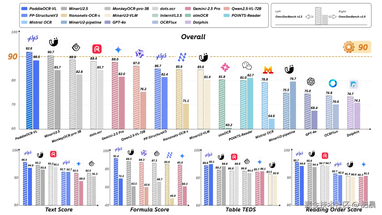 如果说 DeepSeek-OCR 代表了 OCR 在“大模型上下文压缩”方向上的前沿探索,那么 PaddleOCR-VL 则代表了当前 OCR 技术在实用性能与产业落地方面的最高水准。