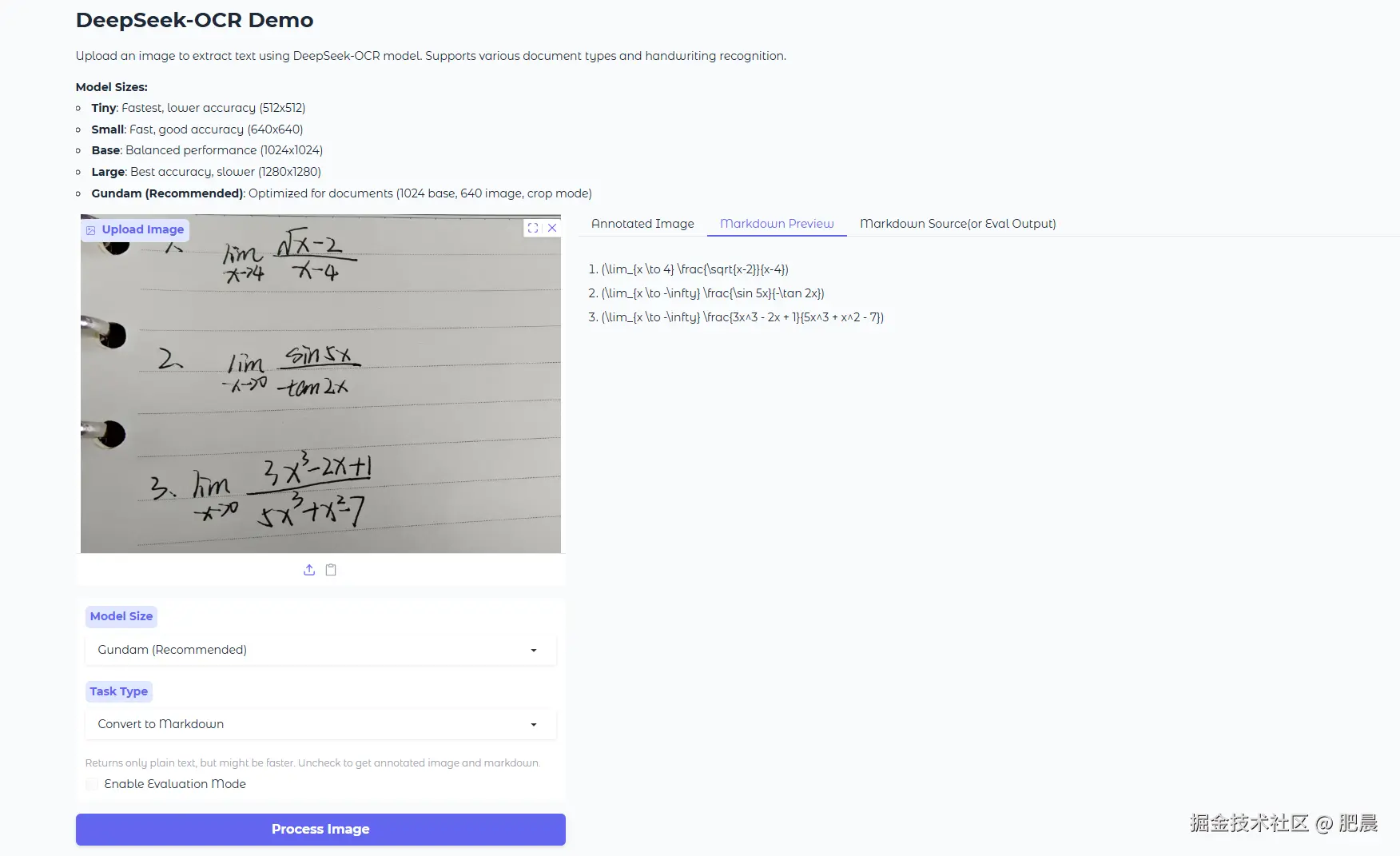 手写了几个极限题,看一下是否能够读取出来。
