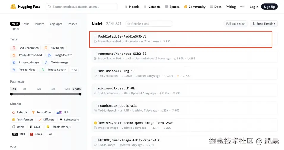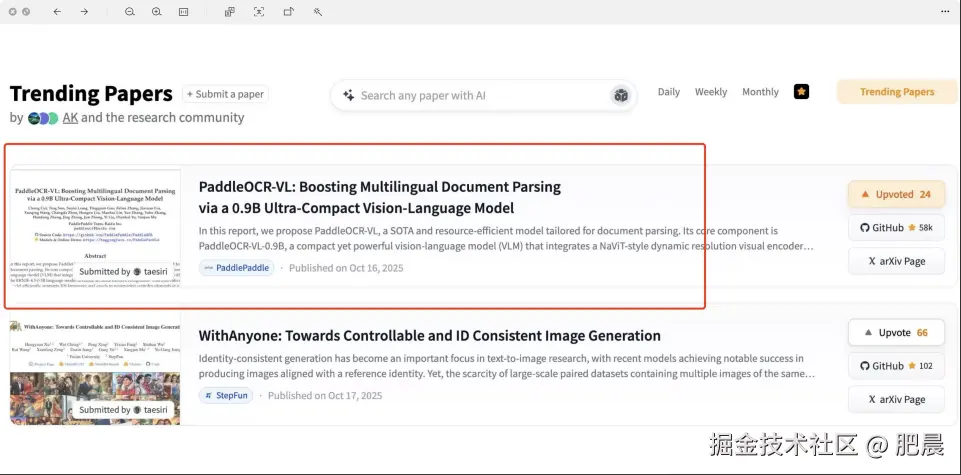 - 比如PaddleOCR-VL连续 5 天登顶 HuggingFace Trending 全球第一;