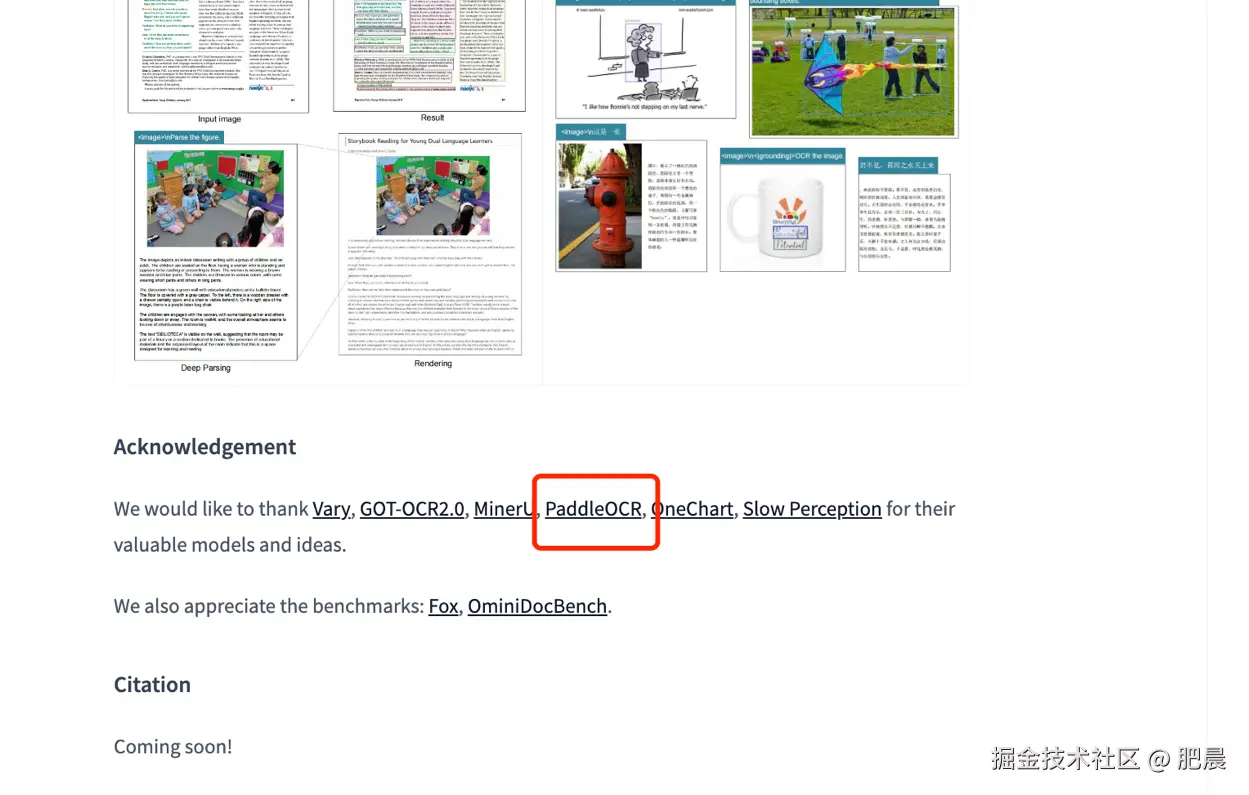 值得注意的是,DeepSeek 在其论文致谢中特别感谢 PaddleOCR,并透露使用 PaddleOCR 进行数据标注——这从侧面印证了 PaddleOCR 在 OCR 领域的基础设施地位。
