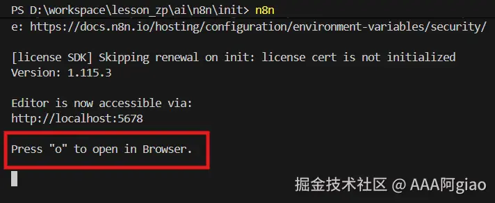 默认情况下,n8n 会在 http://localhost:5678 启动 Web 界面。